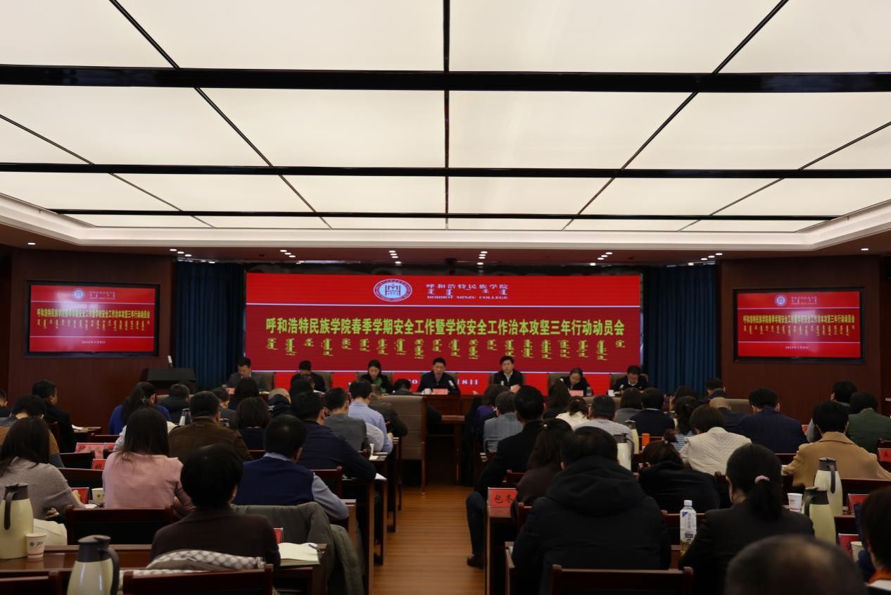 為進一步加強學校安全管理,維護校園安全穩定,結合自治區教育廳春季開學安全工作暨自治區教育系統安全生產治本攻堅三年行動動員部署會議精神,3月8日上午10時,在綜合樓12樓會議室召開了呼和浩特民族學院春季學期安全工作暨安全工作治本攻堅三年行動動員會。校黨委書記劉九萬出席會議并講話。校黨委副書記、校長韓偉新主持會議。校領導格根哈斯、王冬梅、高喜天、劉瑞鴻、額爾敦布和出席會議。