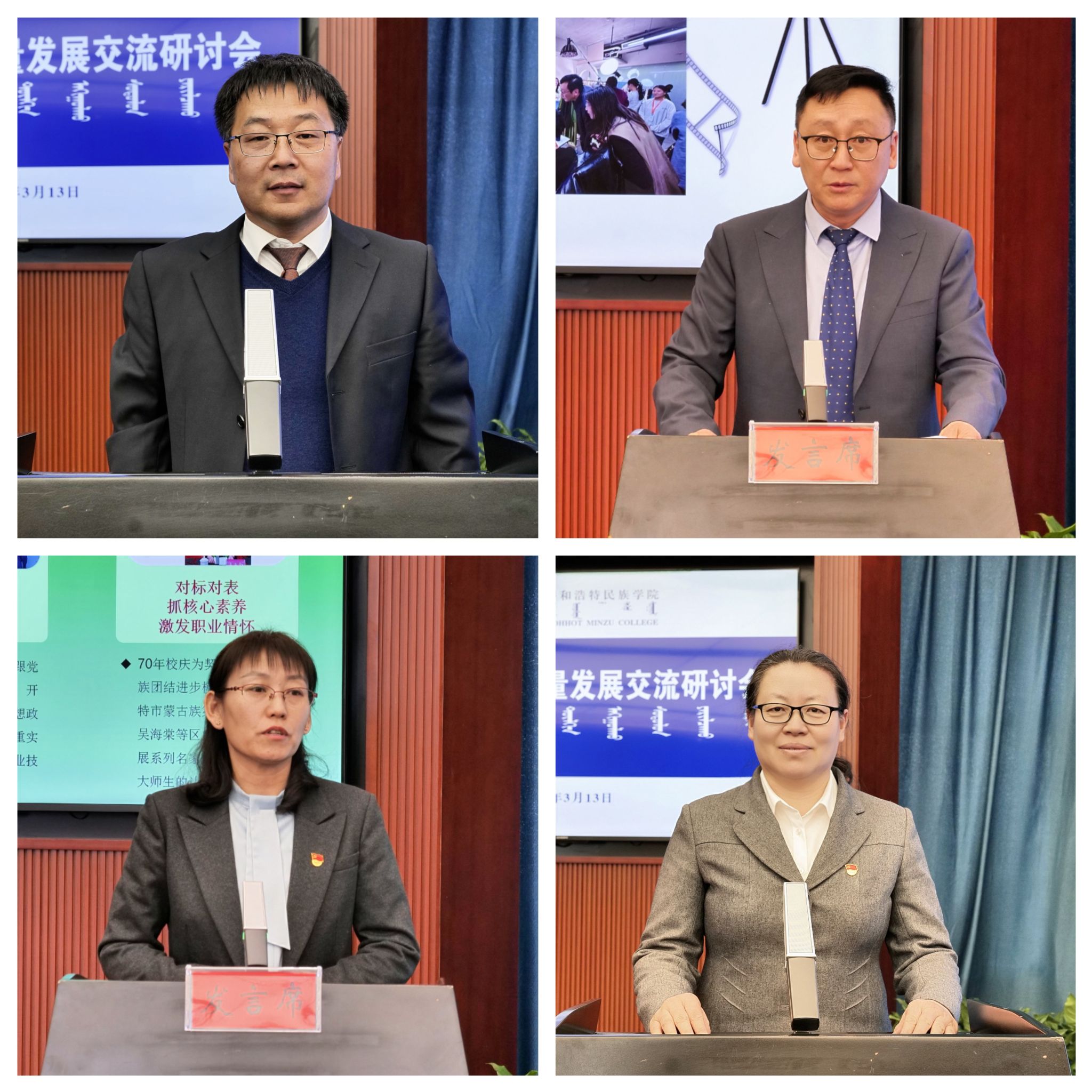 3月13日,學校綜合樓12樓會議室召開推動學校高質量發展交流研討會。校黨委書記劉九萬出席會議并講話。黨委副書記、校長韓偉新主持會議。黨委副書記格根哈斯、黨委委員、紀委書記、監察專員王冬梅、黨委委員、副校長高喜天、黨委委員、副校長劉瑞鴻、黨委委員、副校長額爾敦布和出席會議。