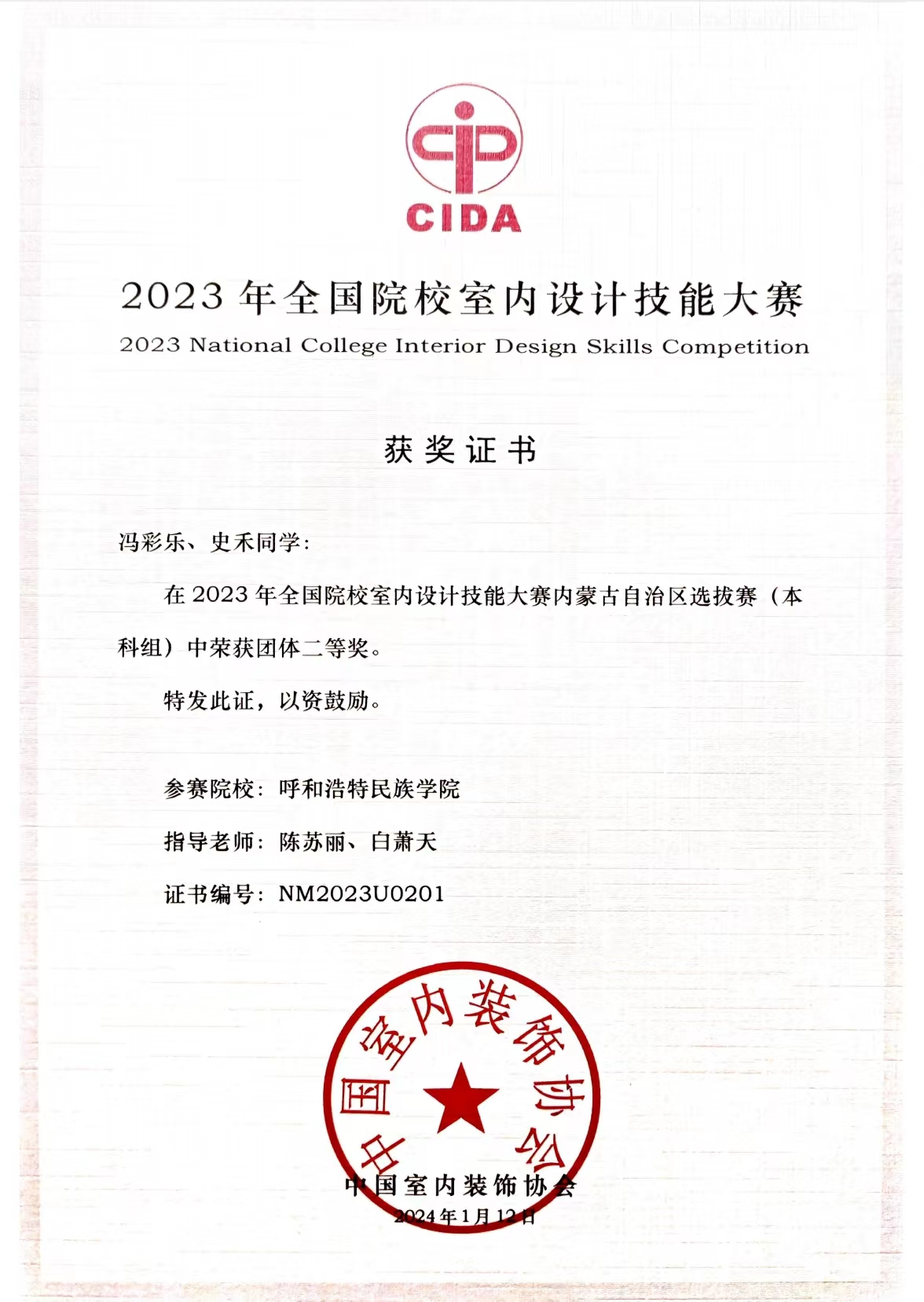 由中國室內(nèi)裝飾協(xié)會(huì)、教育部職業(yè)院校藝術(shù)設(shè)計(jì)類專業(yè)教學(xué)指導(dǎo)委員會(huì)、環(huán)境藝術(shù)設(shè)計(jì)類專業(yè)委員會(huì)組織的2023年全國院校室內(nèi)設(shè)計(jì)技能大賽內(nèi)蒙古自治區(qū)選拔賽結(jié)果揭曉。我校美術(shù)學(xué)院師生作品獲得佳績:魏偉、伊麗亞老師指導(dǎo)的《守護(hù)星辰--社區(qū)親子活動(dòng)中心》(學(xué)生:楊茹平、薛文靜)榮獲本科組團(tuán)體一等獎(jiǎng);陳蘇麗、魏偉老師指導(dǎo)的《悠寶親子活動(dòng)中心》(學(xué)生:劉順閣、張懷禮),陳蘇麗、白蕭天老師指導(dǎo)的《星際宇宙》(學(xué)生:馮彩樂、史禾)均榮獲本科組團(tuán)體二等獎(jiǎng)。其中《守護(hù)星辰--社區(qū)親子活動(dòng)中心》與《星際宇宙》入圍全國總決賽。