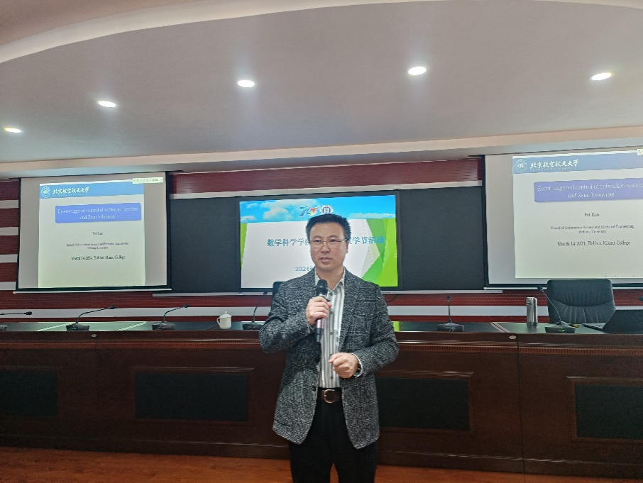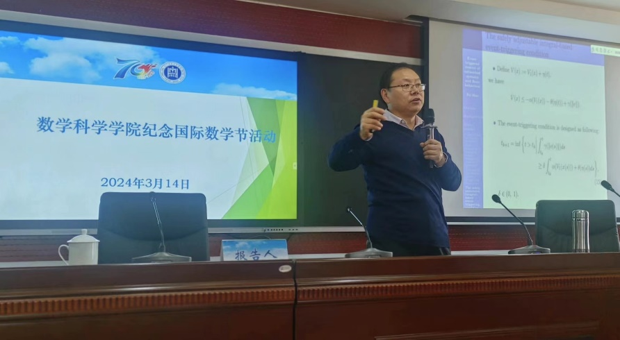 活動邀請北京航空航天大學教授、博士生導師郝飛,內蒙古師范大學二級教授、博士生導師代欽作分別作了題為《網絡化系統中事件觸發控制的若干問題及討論》《達·芬奇的數學世界》的專題講座,兩位專家學識淵博、專業基礎深厚,在報告中緊密結合學科專業實際,旁征博引,深入闡釋了數學理論與文化的內涵。此次報告對提高教師教育教學水平、激發學生學習數學熱情和加強學院數學文化建設起到了積極作用。
