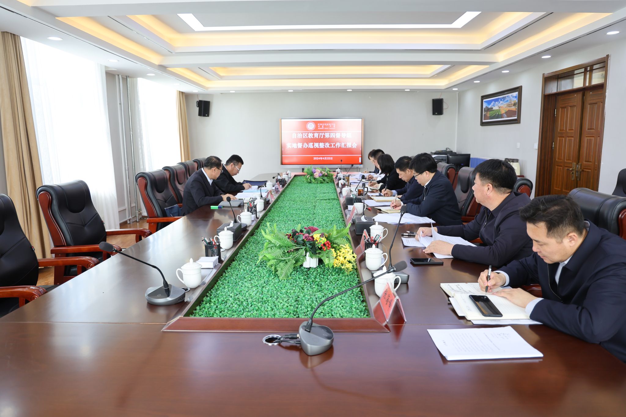 4月22日,自治區教育廳第四督導組組長、自治區黨委教育工委委員、教育廳黨組成員、總督學朱寶江,第四督導組聯絡員、自治區黨委教育工作領導小組秘書組秘書處處長姜玉鵬一行來校檢查指導巡視整改工作,開展實地督辦巡視整改工作,并聽取專題匯報。校黨委書記劉九萬主持會議,黨委副書記、校長韓偉新出席會議,黨委副書記格根哈斯作學校巡視整改工作匯報。