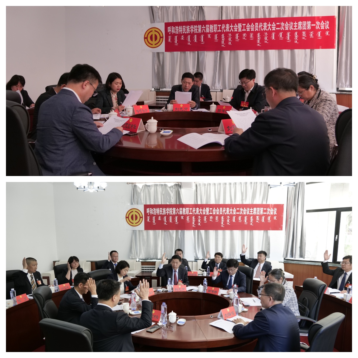 會議舉行期間,學校第六屆教職工代表大會暨工會會員代表大會主席團在圓桌會議室舉行第一次會議,會議以舉手表決的方式全票通過了列席代表、特邀代表建議名單、大會增補代表的決議(草案)、改選第六屆教職工代表大會執行委員會主任人選建議名單、大會日程(草案)。舉行主席團第二次會議,審議通過了《校長工作報告決議》(草案)和《工會工作報告決議》(草案)。