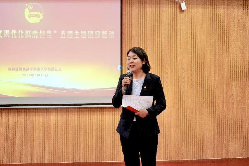 為深入學習宣傳貫徹習近平總書記五四青年節對全國廣大青年寄語精神,弘揚和傳承五四精神,5月10日下午,音樂學院 2022 級音樂學班團支部在音樂樓多功能廳開展了“青春為中國式現代化挺膺擔當”五四主題團日活動。校黨委副書記格根哈斯出席并講話。