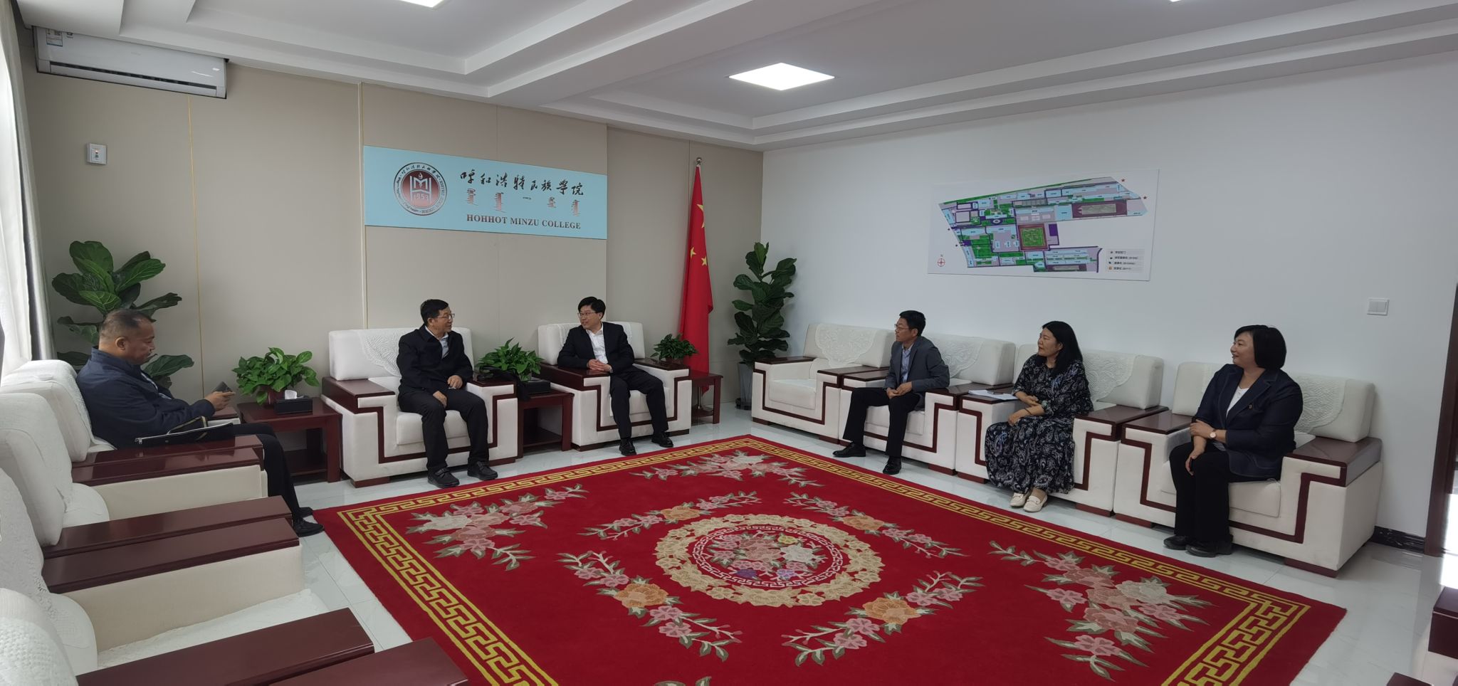 5月14日下午,內(nèi)蒙古北宸智庫研究中心理事長蔡常青、監(jiān)事長馬益波一行來我校考察調(diào)研,校黨委副書記、校長韓偉新會見調(diào)研組一行。韓偉新簡要介紹了學(xué)校發(fā)展歷程、特色專業(yè)設(shè)置等情況,重點(diǎn)介紹了在學(xué)校近些年在教學(xué)科研方面取得的成績和下一步工作思路,希望與中心加強(qiáng)溝通合作,推動學(xué)校科研工作站取得新進(jìn)展。校黨委委員、副校長高喜天出席座談。