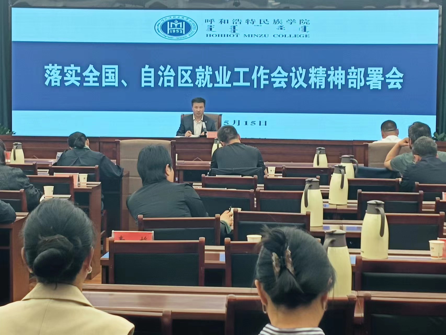 5月15日上午,學(xué)校在綜合樓12樓召開落實(shí)全國、自治區(qū)畢業(yè)生就業(yè)工作會議精神部署會。黨委委員、副校長額爾敦布和出席會議并講話。各學(xué)院相關(guān)負(fù)責(zé)同志參會。