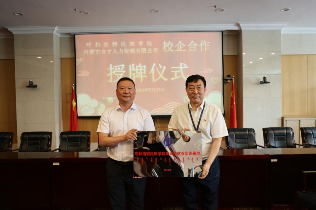上午,校黨委書記劉九萬一行赴內(nèi)蒙古合才人力資源有限公司、內(nèi)蒙古誠諾合才人力資源有限公司拓展就業(yè)崗位,簽訂合作協(xié)議并進行就業(yè)實訓(xùn)基地授牌儀式。
