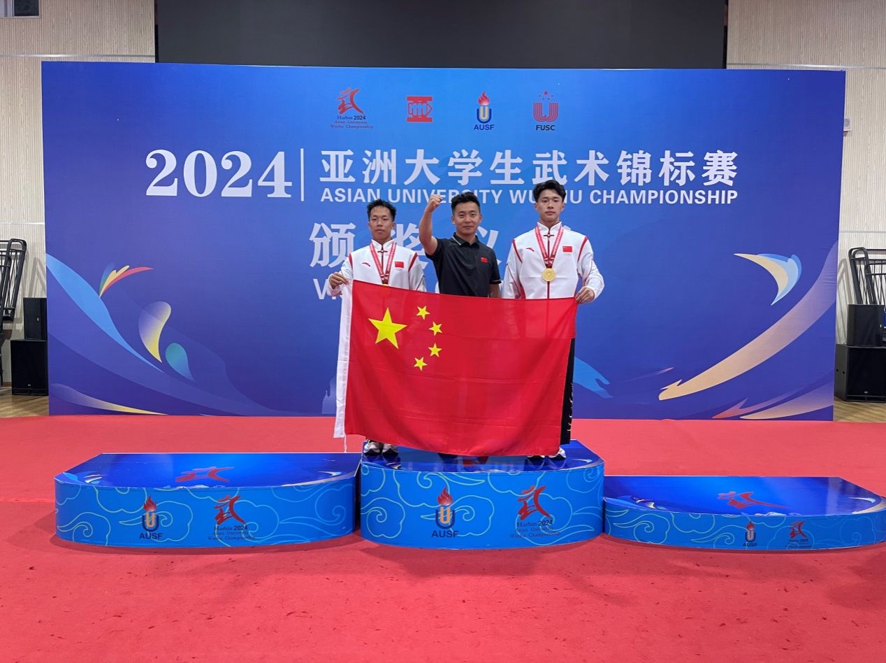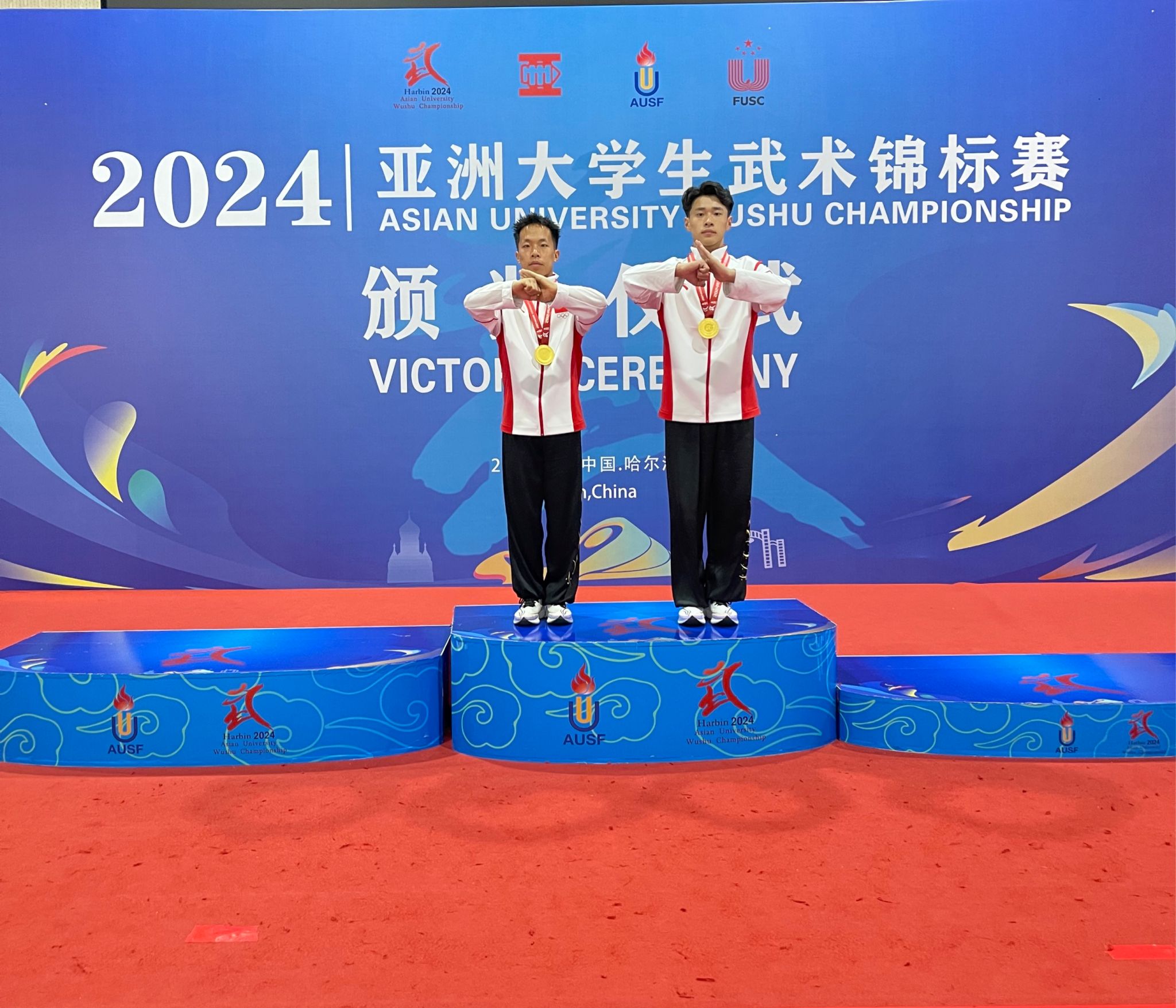 由亞洲大學生體育聯合會主辦,中國學生體育聯合會、黑龍江省教育廳和黑龍江省體育局聯合承辦的2024年亞洲大學生武術錦標賽6月22日在哈爾濱華德學院圓滿閉幕。比賽共有來自亞洲12個國家和地區的運動員參賽。我校體育學院武術與民族傳統班的學生邊佳選、孟祥然獲得男子對練項目冠軍。