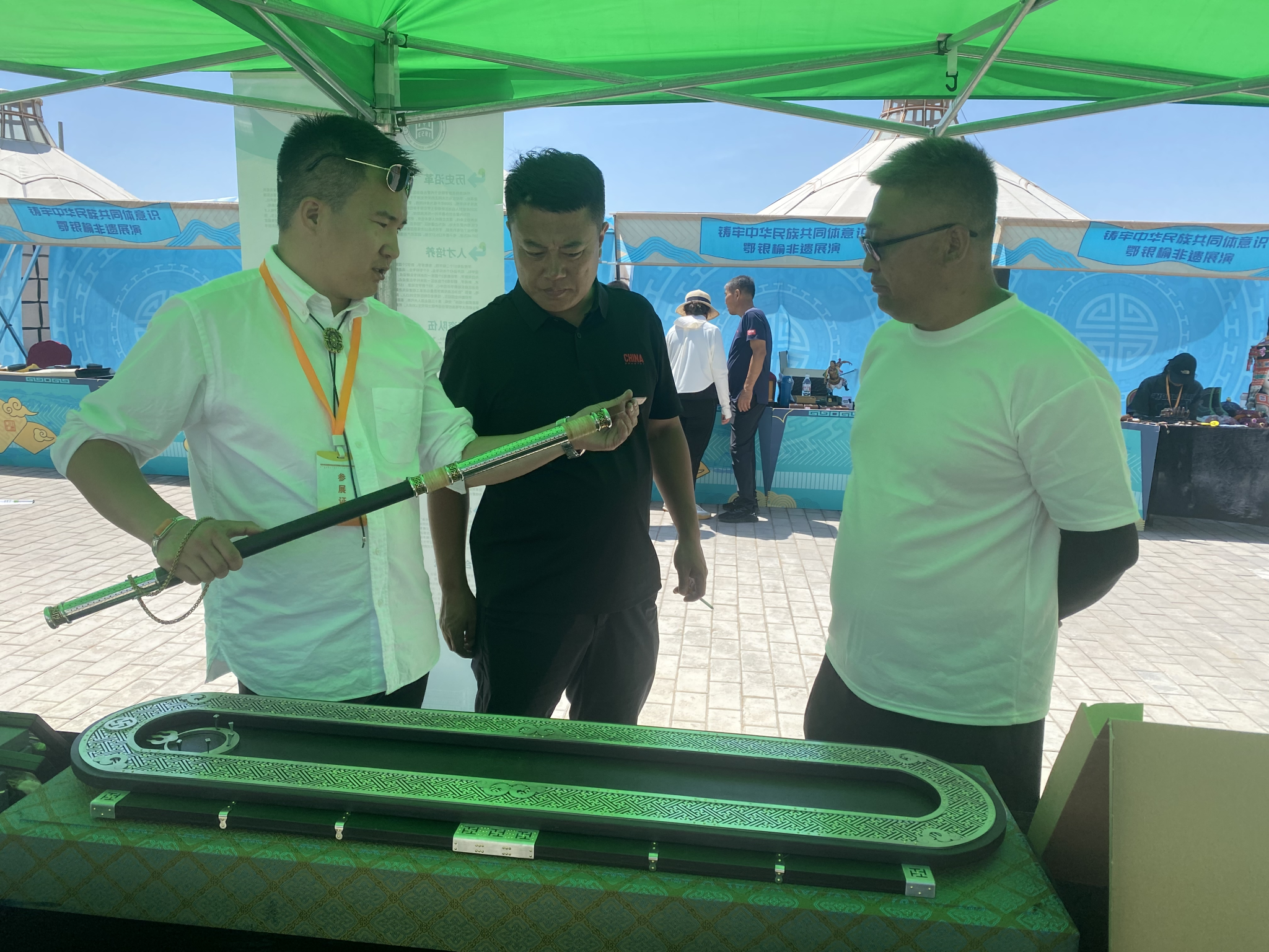 活動(dòng)期間開展鄂銀榆非遺展、信息化成果展示、高校師生作品展示等豐富多彩的活動(dòng)。學(xué)校展陳專區(qū)展出了美術(shù)與設(shè)計(jì)學(xué)院黨外知識(shí)分子、留學(xué)歸國人員、非遺傳承人制作的氈畫、皮畫、金銀工藝品等幾十件作品,展現(xiàn)了學(xué)校在中華優(yōu)秀傳統(tǒng)文化創(chuàng)新性發(fā)展的成果,吸引群眾近距離感受手工藝作品的獨(dú)特魅力,有形有感有效鑄牢中華民族共同體意識(shí),促進(jìn)各民族交往交流交融。