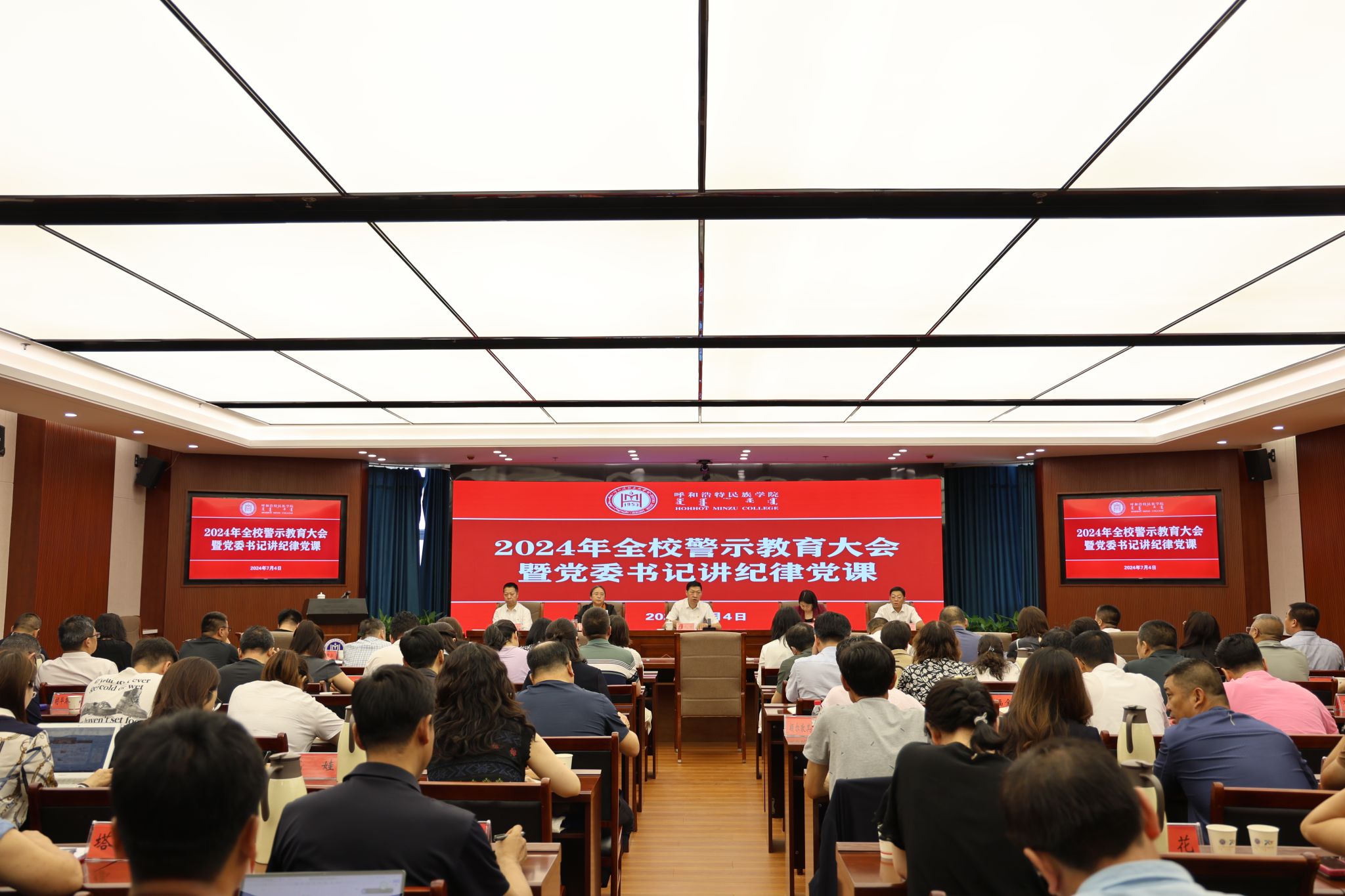 為進一步推進黨紀學習教育走向深入,7月4日上午,學校在綜合樓12樓召開2024年全校警示教育大會暨黨委書記講紀律黨課。校黨委書記劉九萬,黨委副書記格根哈斯,黨委委員、紀委書記、監察專員王冬梅,黨委委員、副校長高喜天,黨委委員、副校長雙虎出席會議。全校副處級以上干部參加會議。會議由格根哈斯主持。