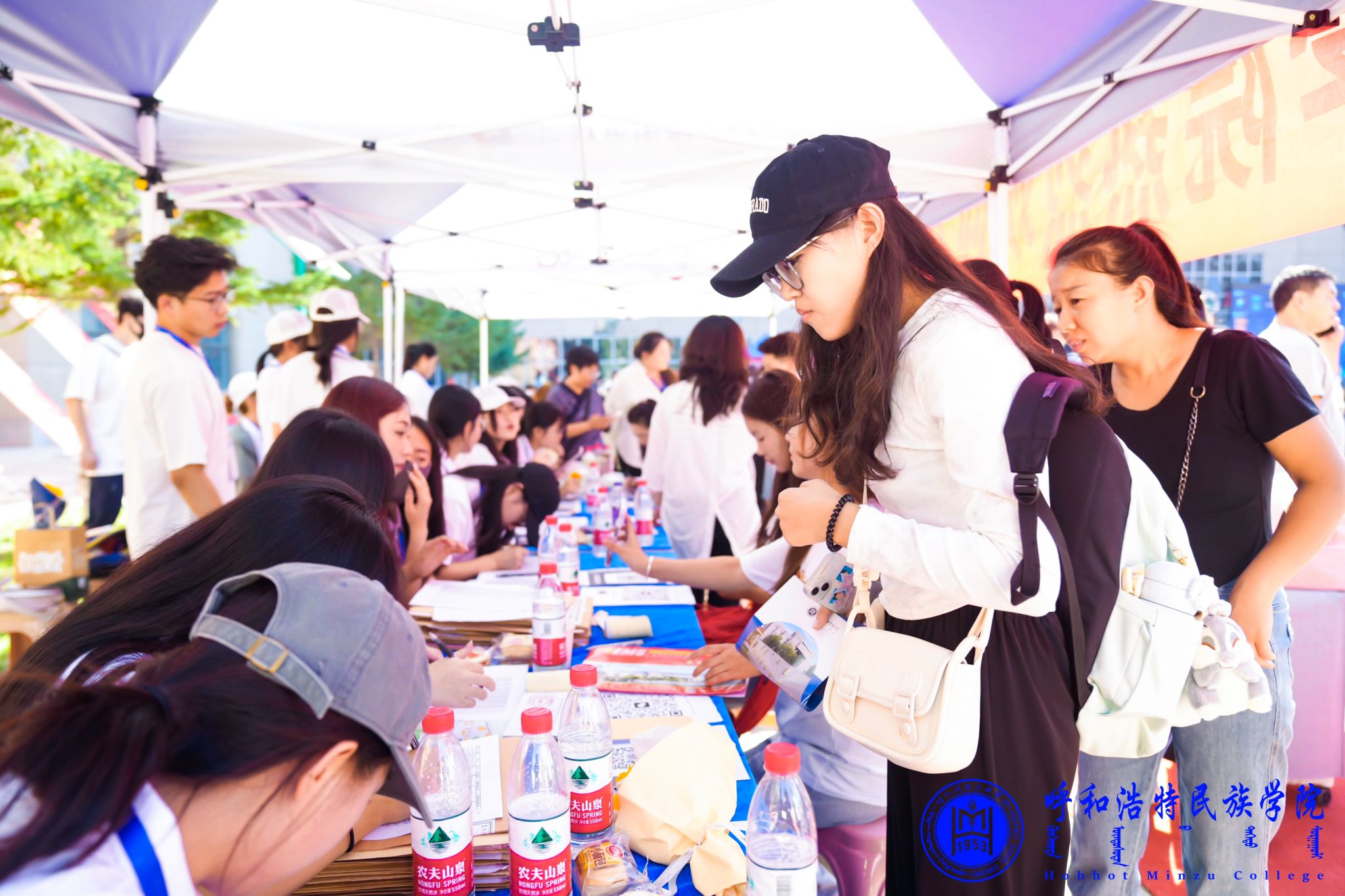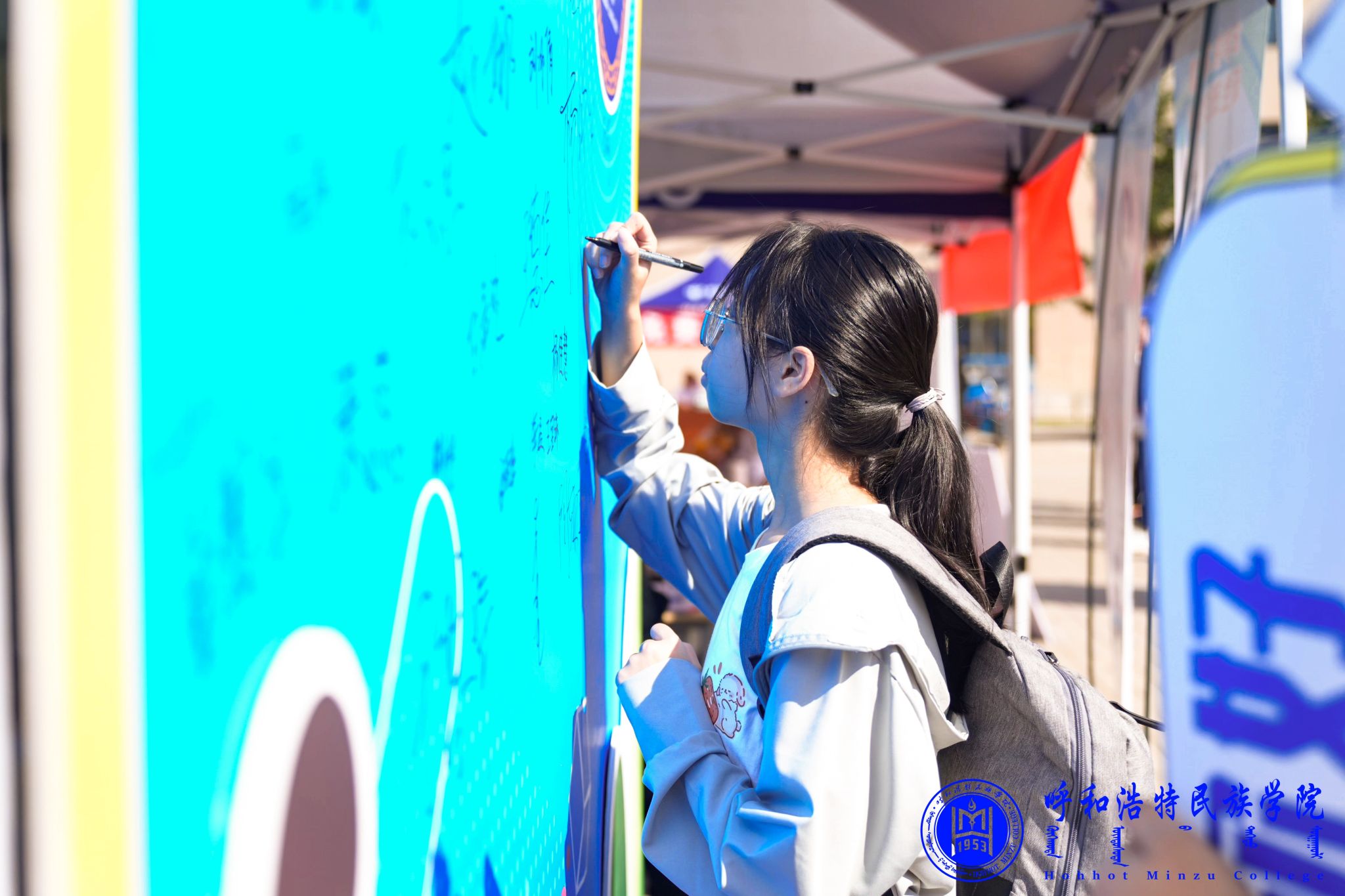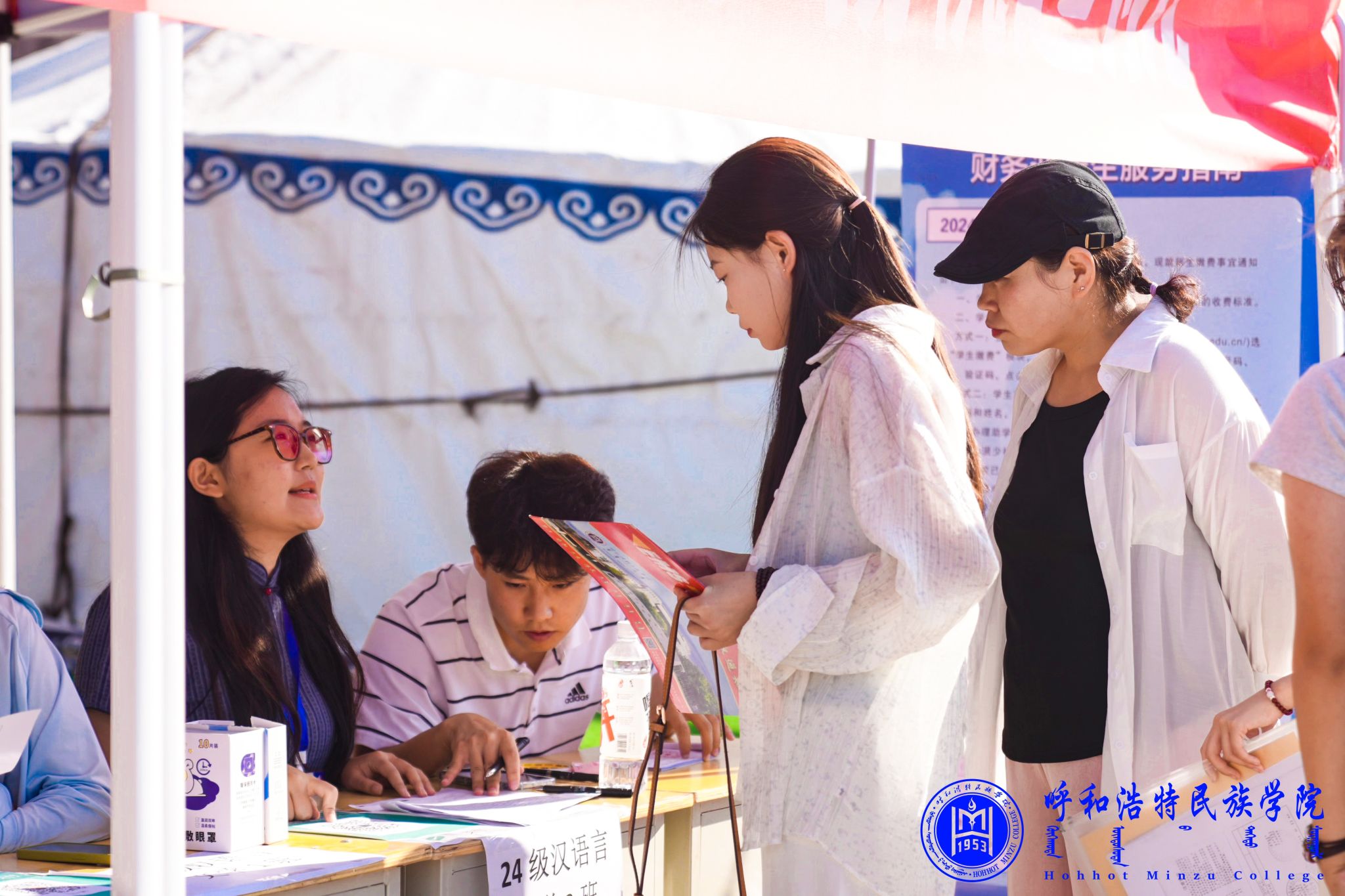 大家有序辦理入學手續(xù),在打卡點合影留念、在2024留言板上留下自己的“呼民院初印象”……