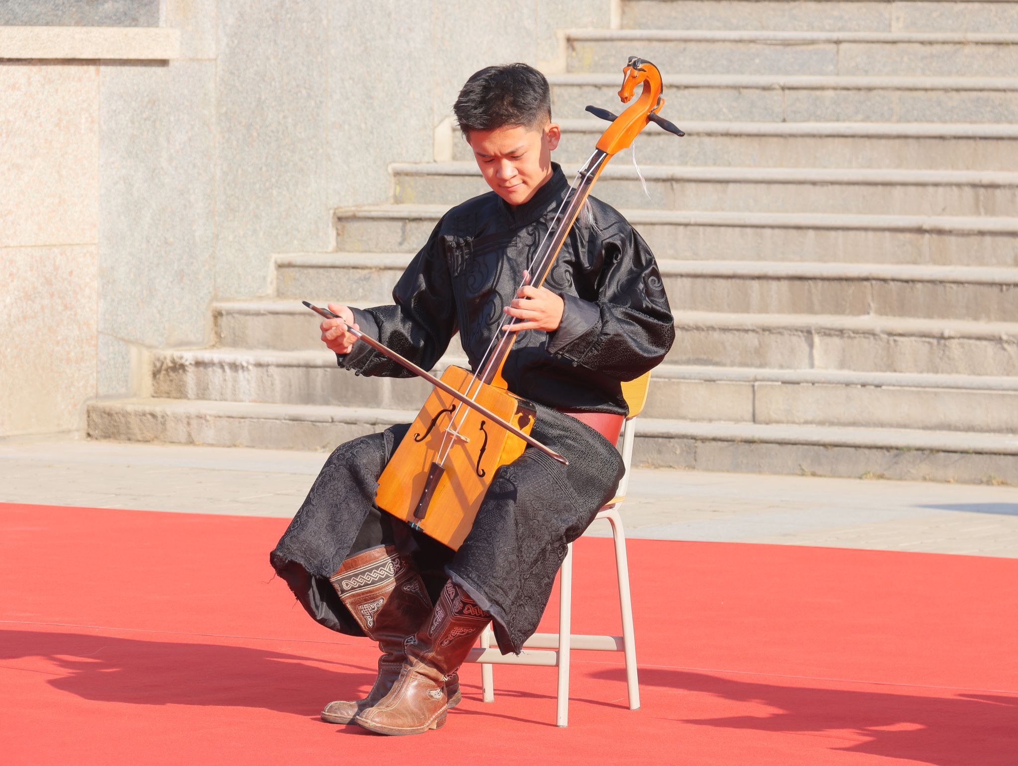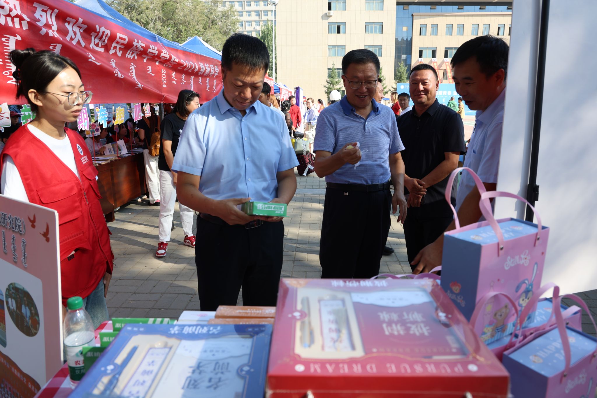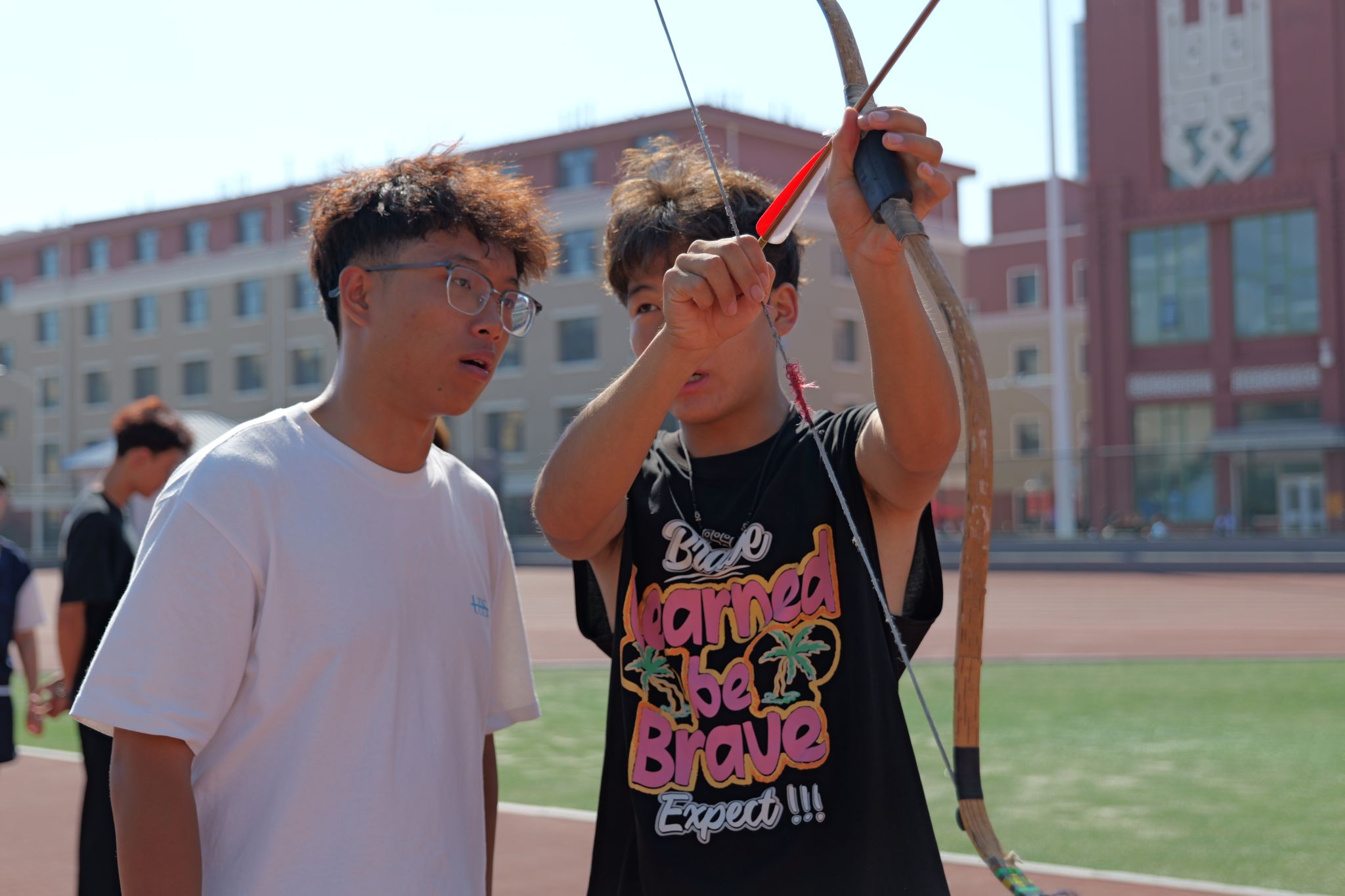 迎新現(xiàn)場,馬頭琴齊奏、歌舞表演輪番上陣,非遺藝術品琳瑯滿目,布魯、射箭等非遺體育體驗項目豐富多彩,為新生和家長營造了濃厚的校園文化氛圍。