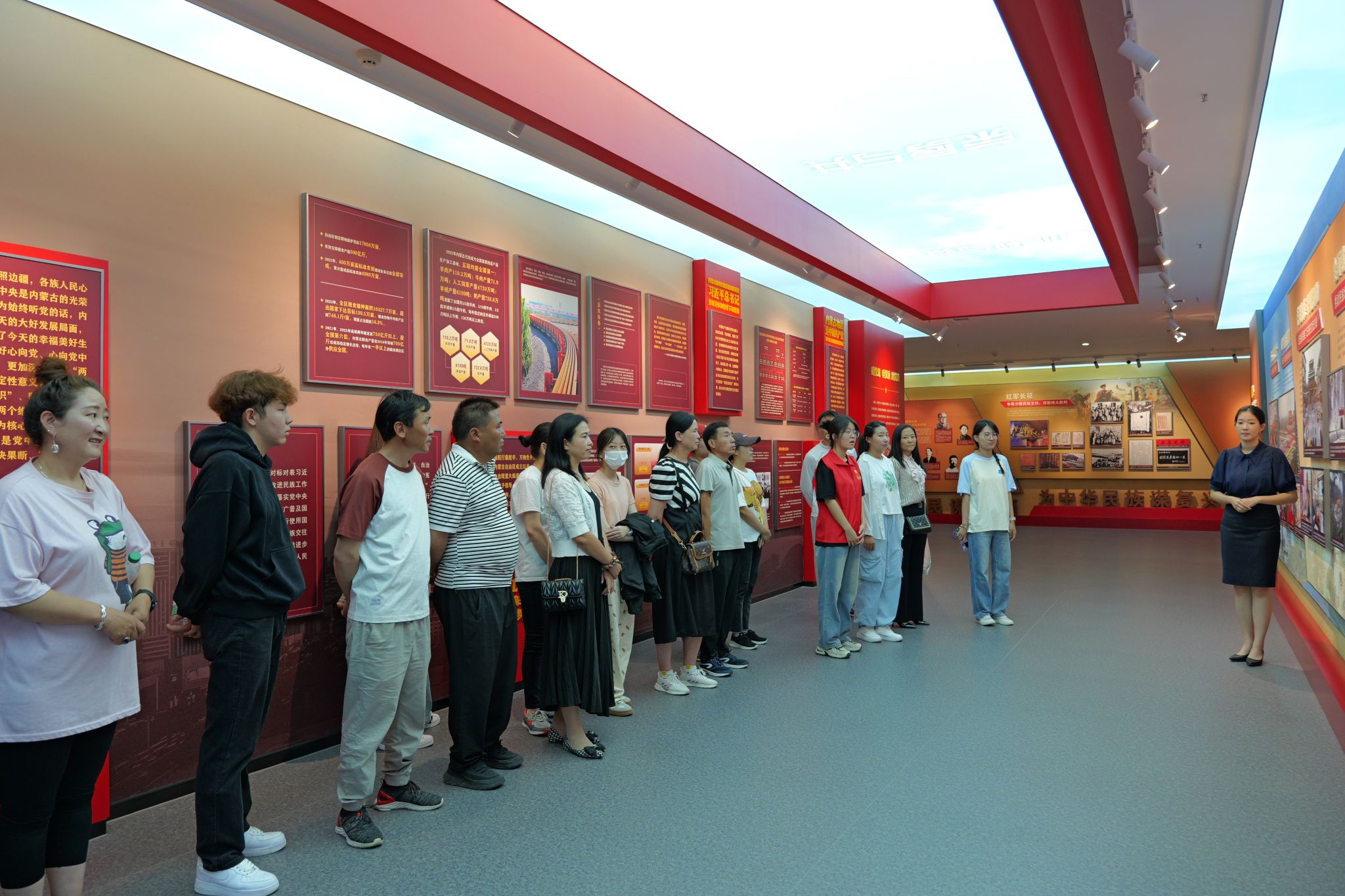 鑄牢中華民族共同體教育館內,新生和家長跟隨講解員的腳步,聆聽第一堂民族團結課程。校史館里,學長學姐親手為新同學戴上第一枚校徽,講述學校70年辦學歷史,歡迎大家加入呼民院大家庭。