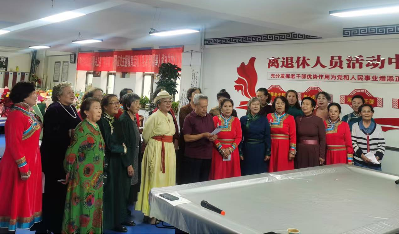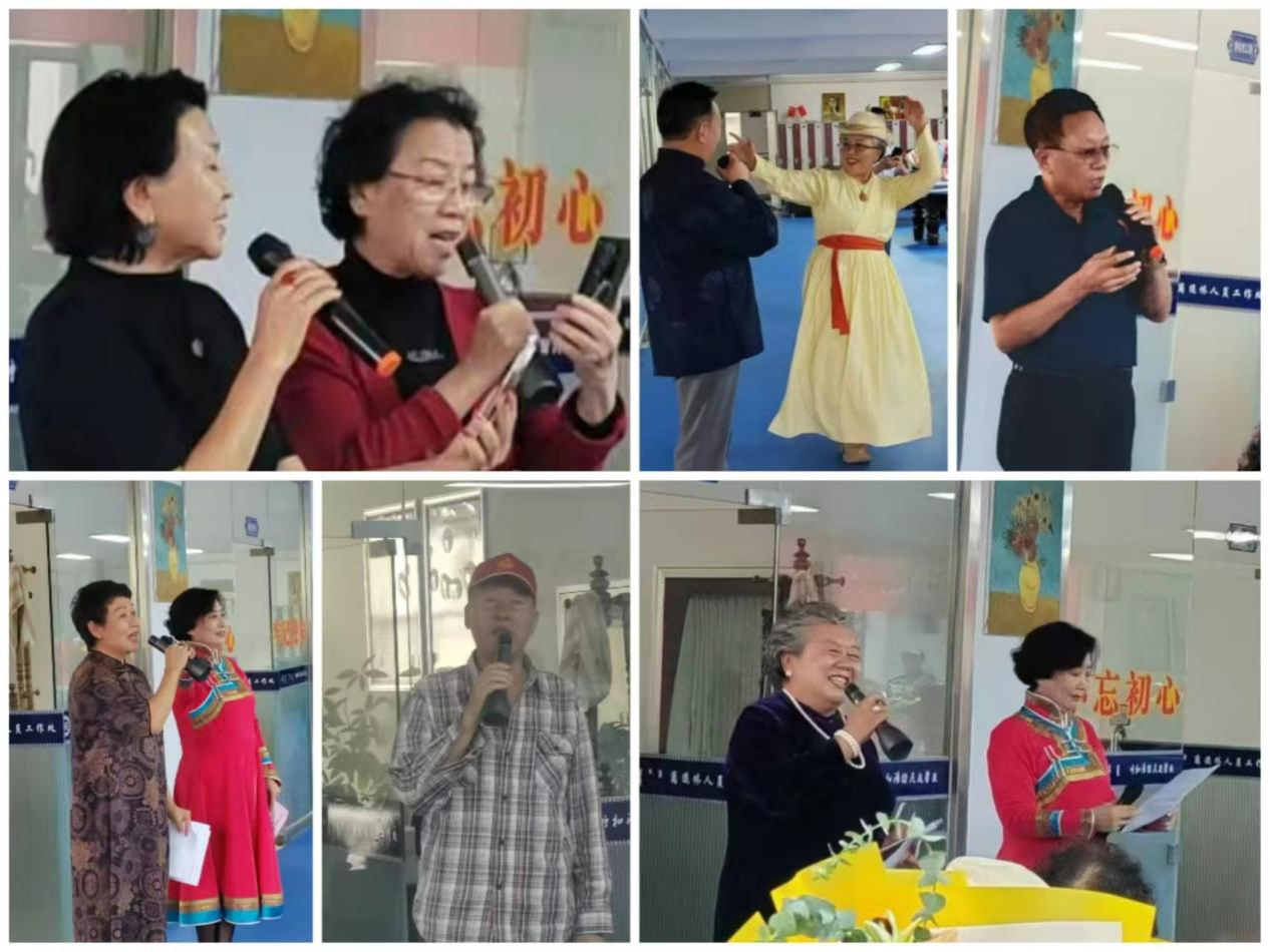 全體與會人員合影留念后,進行了形式多樣的文藝表演。文藝表演在優(yōu)美的歌聲中開場,在合唱隊老同志們的合唱、獨舞、京劇表演中達到高潮,在老教師們的精彩歌唱中落下帷幕。