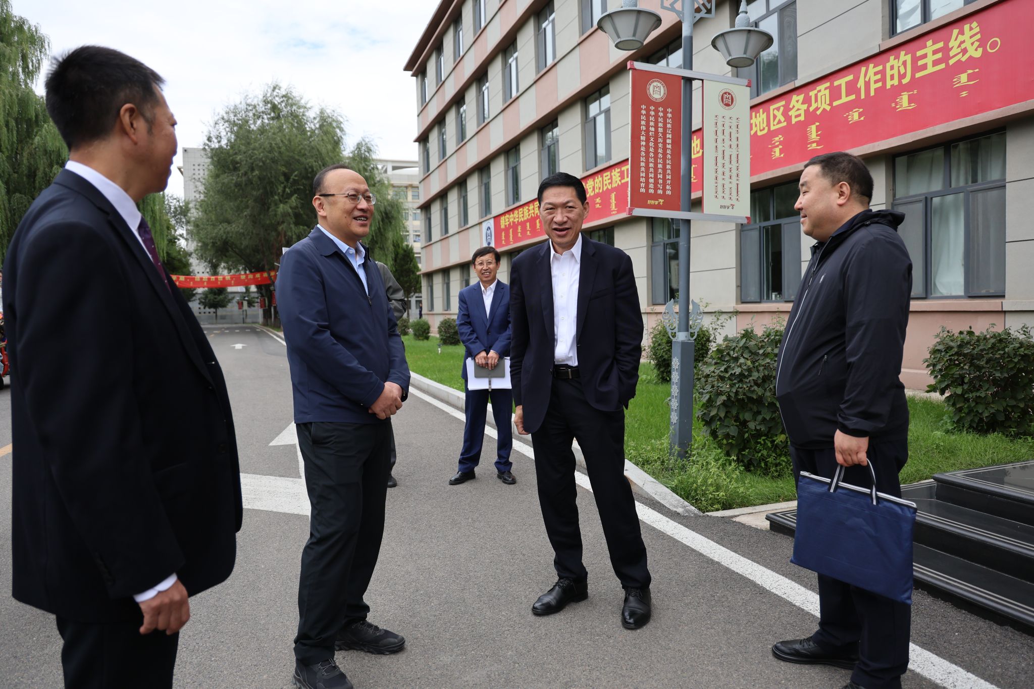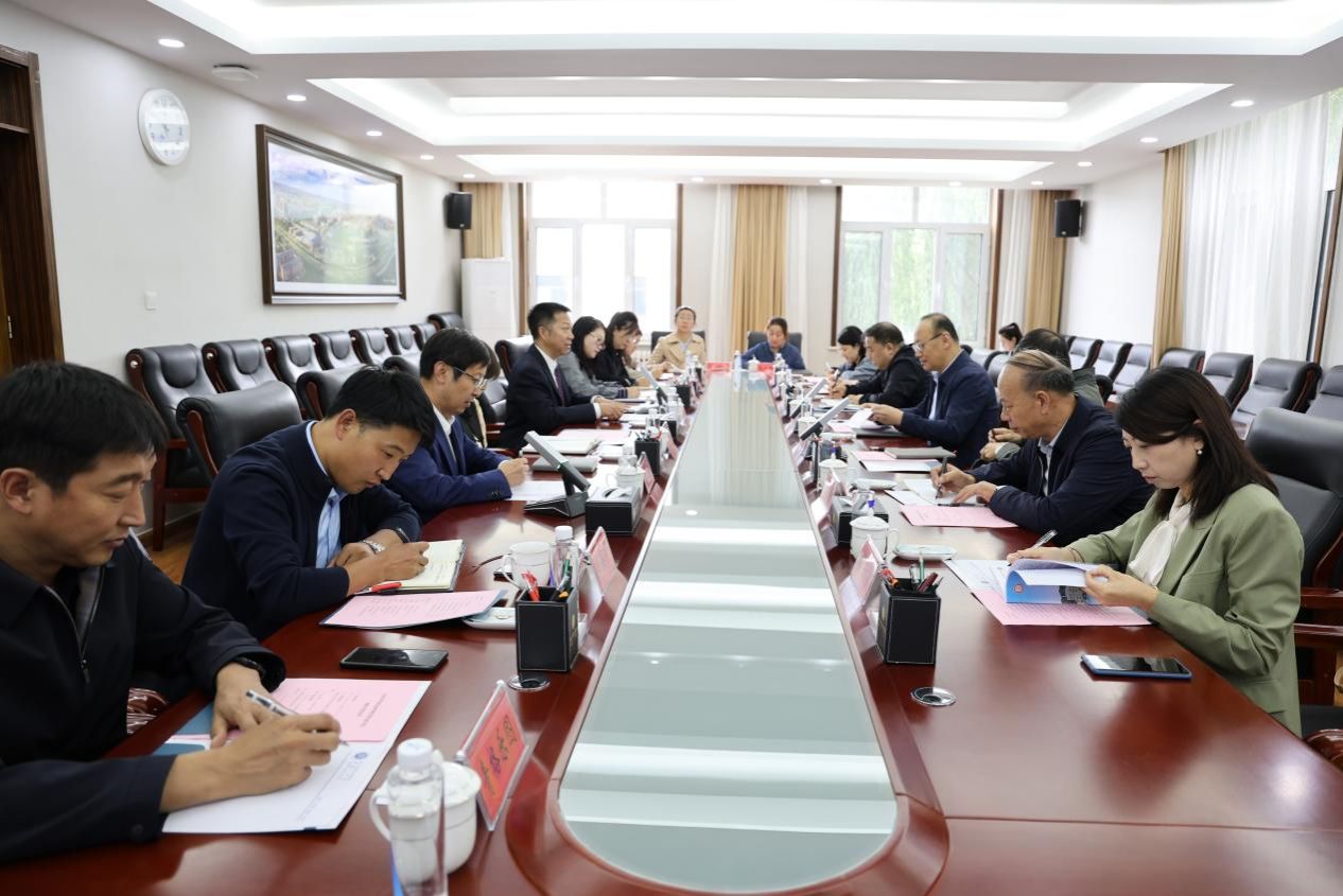座談前,校黨委書記劉九萬、副校長雙虎與谷磊一行作了溝通交流。