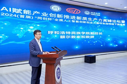 額爾敦布和在致辭中指出,高校在推動(dòng)科技創(chuàng)新和產(chǎn)業(yè)發(fā)展中扮演重要角色,要充分發(fā)揮高校的科研優(yōu)勢(shì)和人才資源,積極參與AI科技研究與應(yīng)用。他指出,本次“同創(chuàng)杯”大賽是交流人工智能雙創(chuàng)成果的重要平臺(tái),學(xué)校將以本次大會(huì)為契機(jī),強(qiáng)化創(chuàng)新人才匯聚,推動(dòng)更多的AI技術(shù)落地生根。