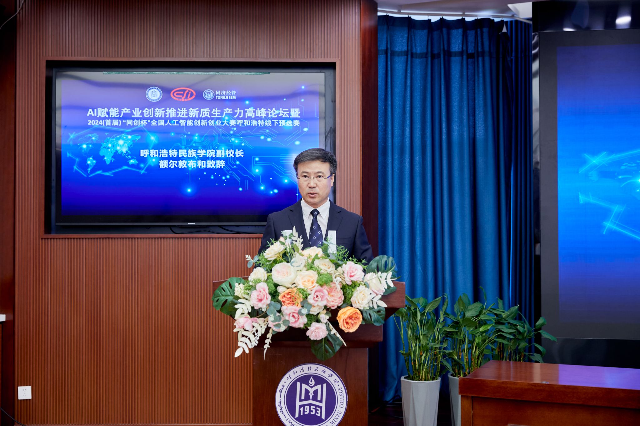 謝恩在致辭中表示,人工智能是新一輪科技革命和產(chǎn)業(yè)變革的重要驅(qū)動(dòng)力量。他指出這次在呼和浩特民族學(xué)院召開AI論壇和預(yù)選賽,標(biāo)志著“同創(chuàng)杯”大賽經(jīng)過(guò)前期籌備,已邁出了堅(jiān)實(shí)的第一步。這是一項(xiàng)具有重要意義的賽事,將為廣大青年學(xué)子提供一個(gè)展示自我、實(shí)現(xiàn)夢(mèng)想的舞臺(tái),也將為推動(dòng)人工智能創(chuàng)新創(chuàng)業(yè)注入新動(dòng)能。