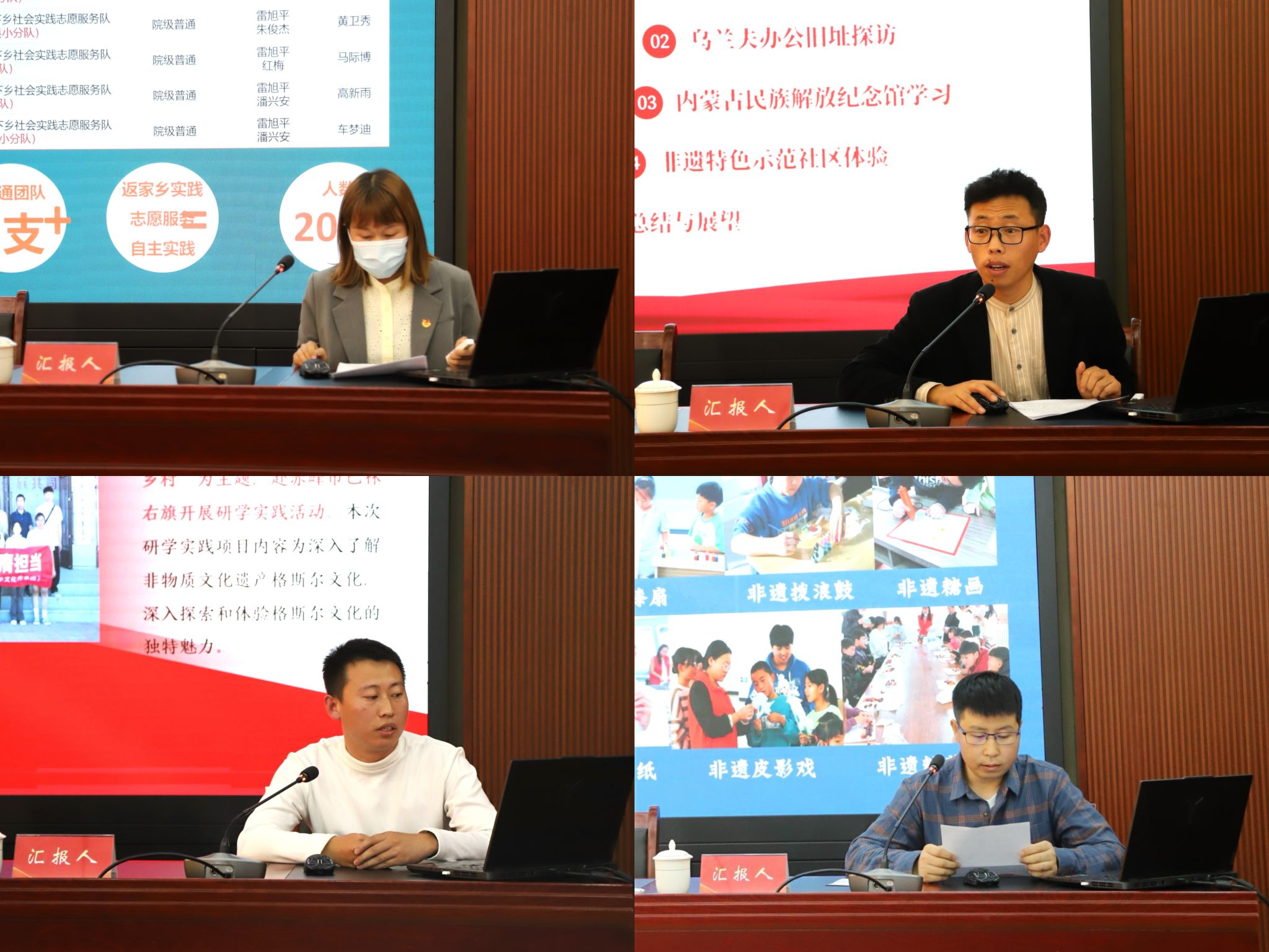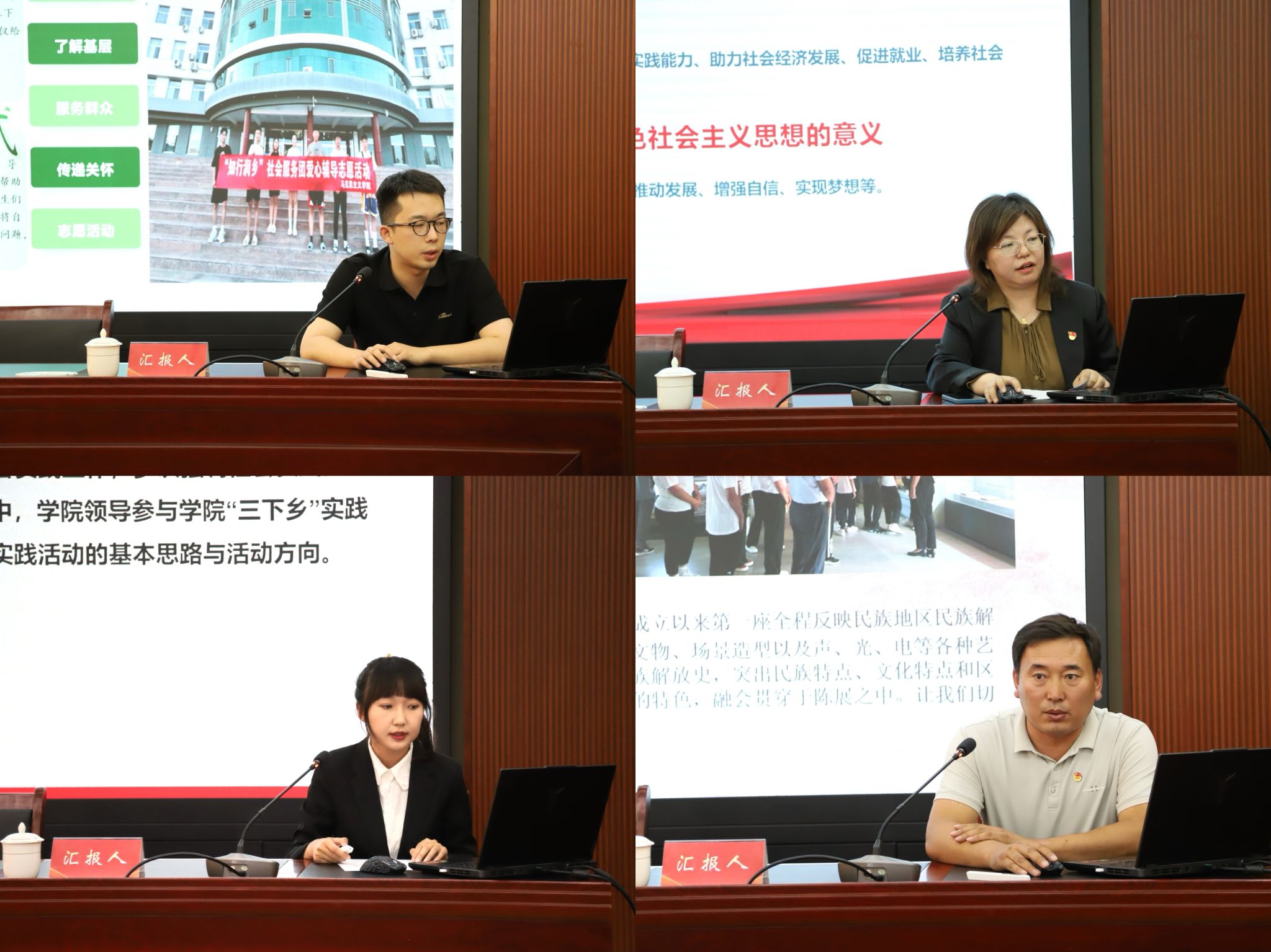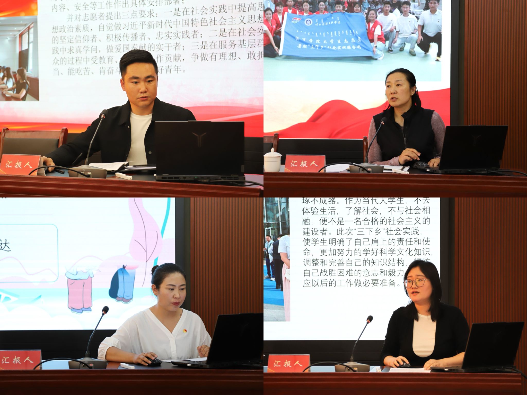 會上,各學院團總支書記、負責人以PPT和視頻等形式從組織籌備、活動開展、調研成果、宣傳報道等方面依次進行匯報,展示暑期“三下鄉”社會實踐豐碩成果,分享實踐經驗和心得。團委副書記胡斯勒對2024年暑期“三下鄉”社會實踐工作進行了總結。
