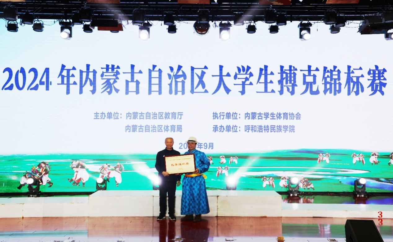 9月29日,2024年內蒙古自治區大學生搏克錦標賽閉幕式在鑄牢教育館二樓舉行,校黨委委員、副校長劉瑞鴻等相關單位領導參加閉幕式并為獲獎運動員頒獎。