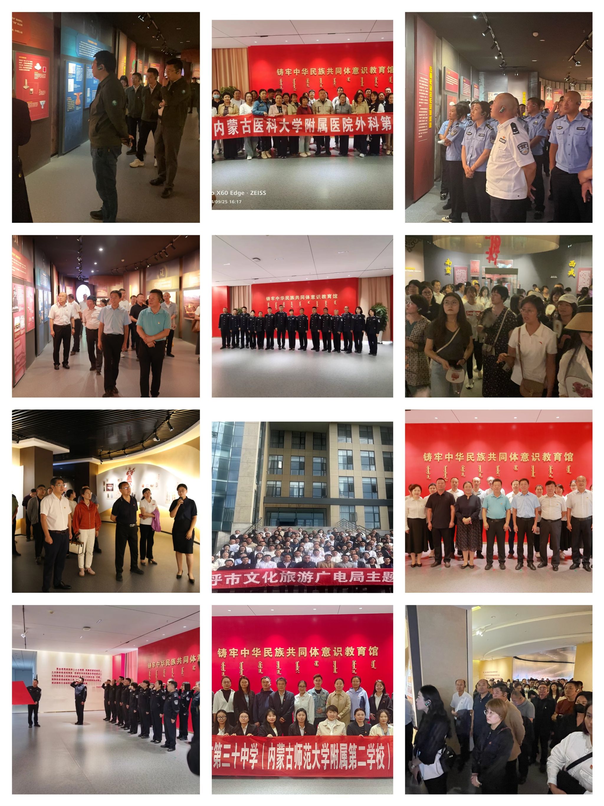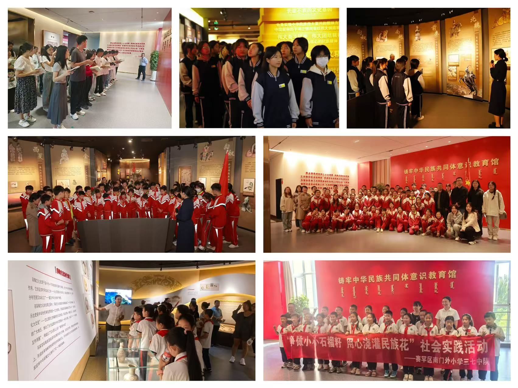 教育館以秋季入學為契機,積極探索“館課一體、館教一體、館研一體”融合。安排《中華民族共同體概論》《中國近現代史綱要》《中國共產黨歷史》《中國文化概論》在館內開展實踐教學,同時開展入學教育、入職教育、師生黨團日、班會等活動,打造“行走的思政課”。堅持大中小學聯學聯研、校地聯建聯動,呼市商貿旅游職業學校、北垣街小學等大中小學先后來館開展研學,內蒙古自然資源廳、內蒙古住建廳、內蒙古人社廳、內蒙古公安廳、內蒙古司法廳等單位到館開展黨日活動。進一步優化展陳內容,以《中華民族共同體概論》為大綱,契合教材相同教學點110余處、相同教學圖片10余幅,有效闡釋中華民族共同體形成與發展的歷史、中華民族共同體建設與中華民族現代文明、與中國式現代化等重要內容,推進學校鑄牢中華民族共同體意識教育與研究陣地建設。