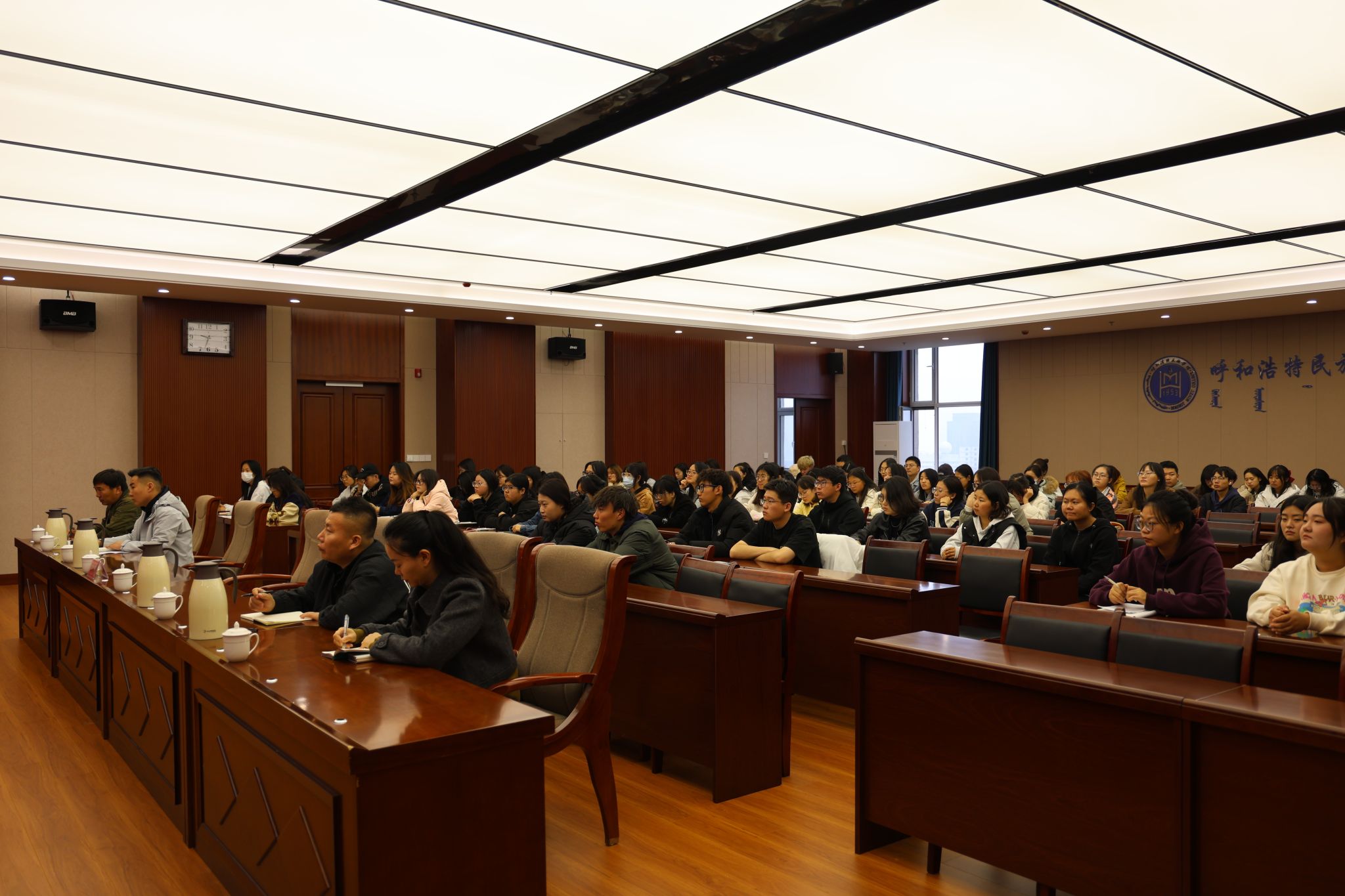 為深入學(xué)習(xí)貫徹習(xí)近平新時代中國特色社會主義思想,傳承和弘揚中國共產(chǎn)黨人精神譜系,常態(tài)長效開展黨史學(xué)習(xí)教育,10月21日,學(xué)校舉辦“傳承紅色基因、學(xué)思踐悟中國共產(chǎn)黨人精神譜系”系列宣講會,邀請自治區(qū)“五一”勞動獎?wù)芦@得者、內(nèi)蒙古師范大學(xué)馬克思主義學(xué)院黨委書記張瑞軍作了專題宣講。蒙古學(xué)學(xué)院、文學(xué)院、外國語學(xué)院、新聞傳媒學(xué)院、教育學(xué)院、音樂與舞蹈學(xué)院等六個學(xué)院的120余名師生代表參會。會議由校黨委宣傳部部長張海峰主持。