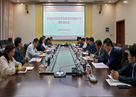 10月23日校黨委副書記格根哈斯帶隊赴貴州民族大學考察學習,并進行座談交流。貴州民族大學黨委副書記楊聲國出席座談會。兩校相關(guān)部門單位負責人參加交流座談。