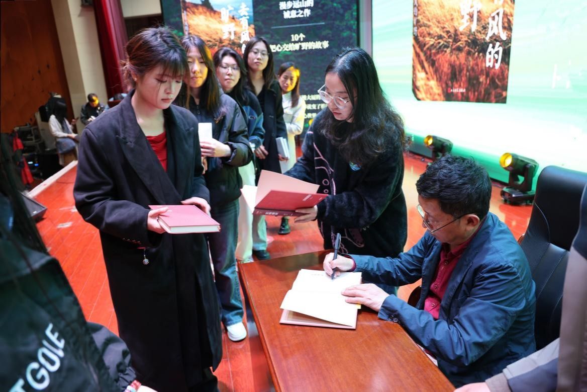 在互動環節,師生們踴躍參與,現場氣氛莊重而熱烈。阿來結合自身的生活和創作經歷,耐心細致地與同學們分享閱讀和寫作的經驗。他告訴同學們:“要真正走進自然,深入理解世界,真實感受生命。”同時,阿來鼓勵同學們多讀書、多行走,不斷拓寬視野,豐富自己的內心世界。