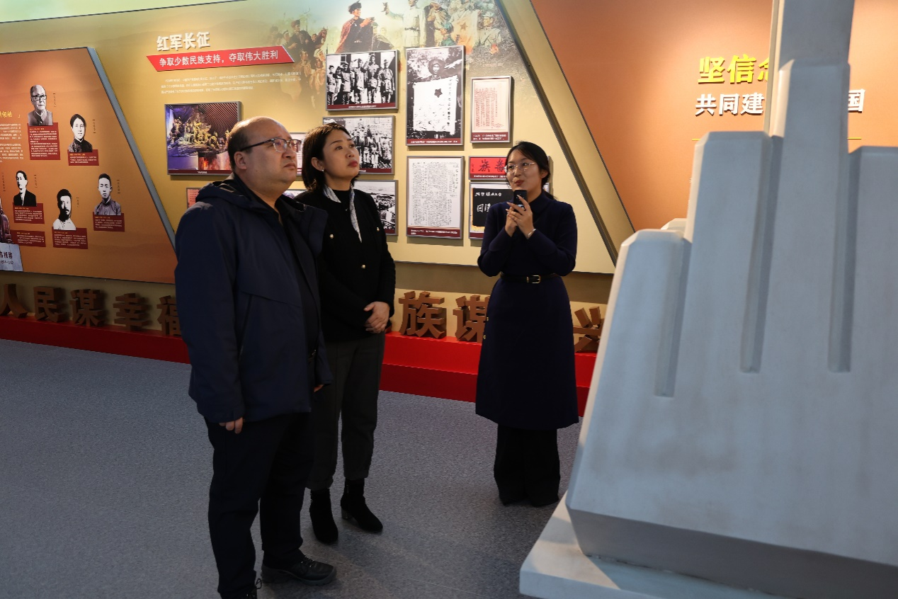 孫林一行參觀考察了校史館、鑄牢中華民族共同體意識教育館、非遺體驗館等校內場館和時代楷模人物長廊及民族團結進步文化長廊。