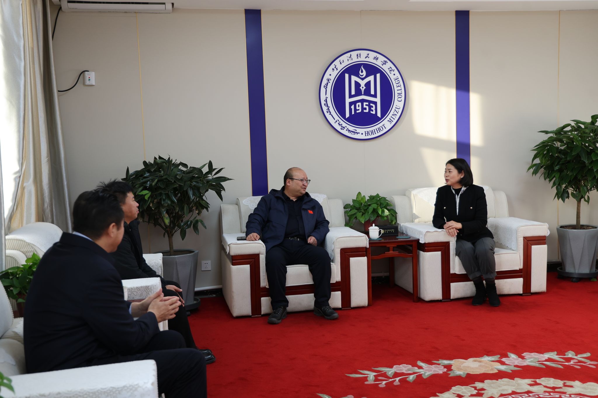 11月12日,內蒙古民族大學黨委委員、宣傳部部長孫林一行來我校考察調研。校黨委副書記格根哈斯會見了孫林一行,并介紹了學校在全面貫徹落實鑄牢中華民族共同體意識主線,以推進“兩館兩廊一園”陣地建設和使用為抓手,持續加強鑄牢中華民族共同體意識宣傳教育和教學科研,發揮全國民族團結進步示范學校模范作用的經驗做法。