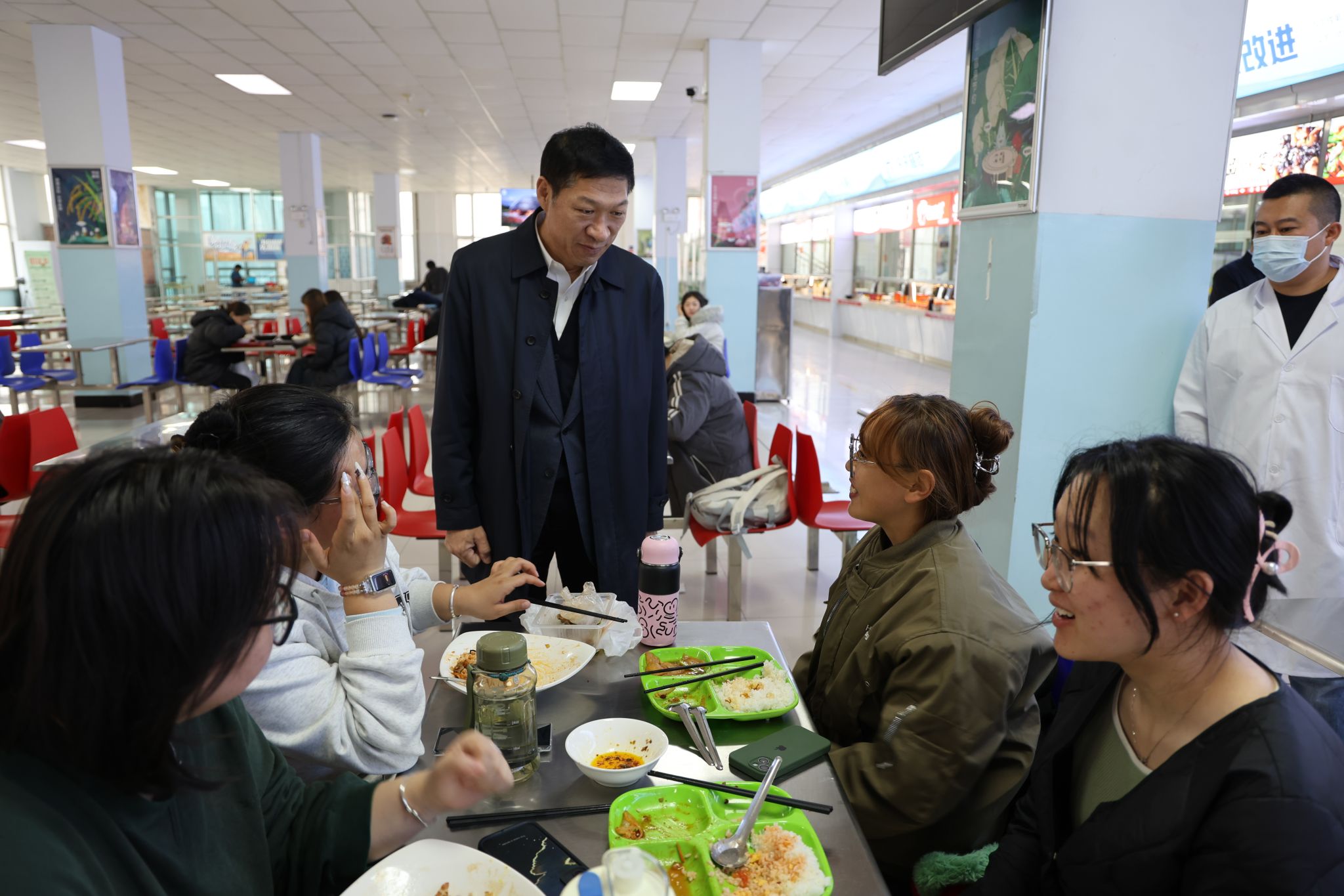 在北區(qū)食堂,劉九萬與正在就餐的同學(xué)們親切交談,詢問大家的生活和學(xué)習(xí)情況,了解同學(xué)們的心聲,聽取學(xué)生的意見和建議。同學(xué)們暢所欲言,表示食堂的品種更多了、環(huán)境更好了、價(jià)格更實(shí)在了。劉九萬強(qiáng)調(diào),校園食品安全事關(guān)師生身心健康和社會和諧穩(wěn)定,要強(qiáng)化食品加工全過程、全流程、全鏈條監(jiān)管,堅(jiān)決守牢食品安全底線,要主動(dòng)傾聽學(xué)生訴求,合理調(diào)整膳食品種,不斷提高飯菜質(zhì)量和服務(wù)水平,確保廣大師生吃得安全、健康、營養(yǎng)。