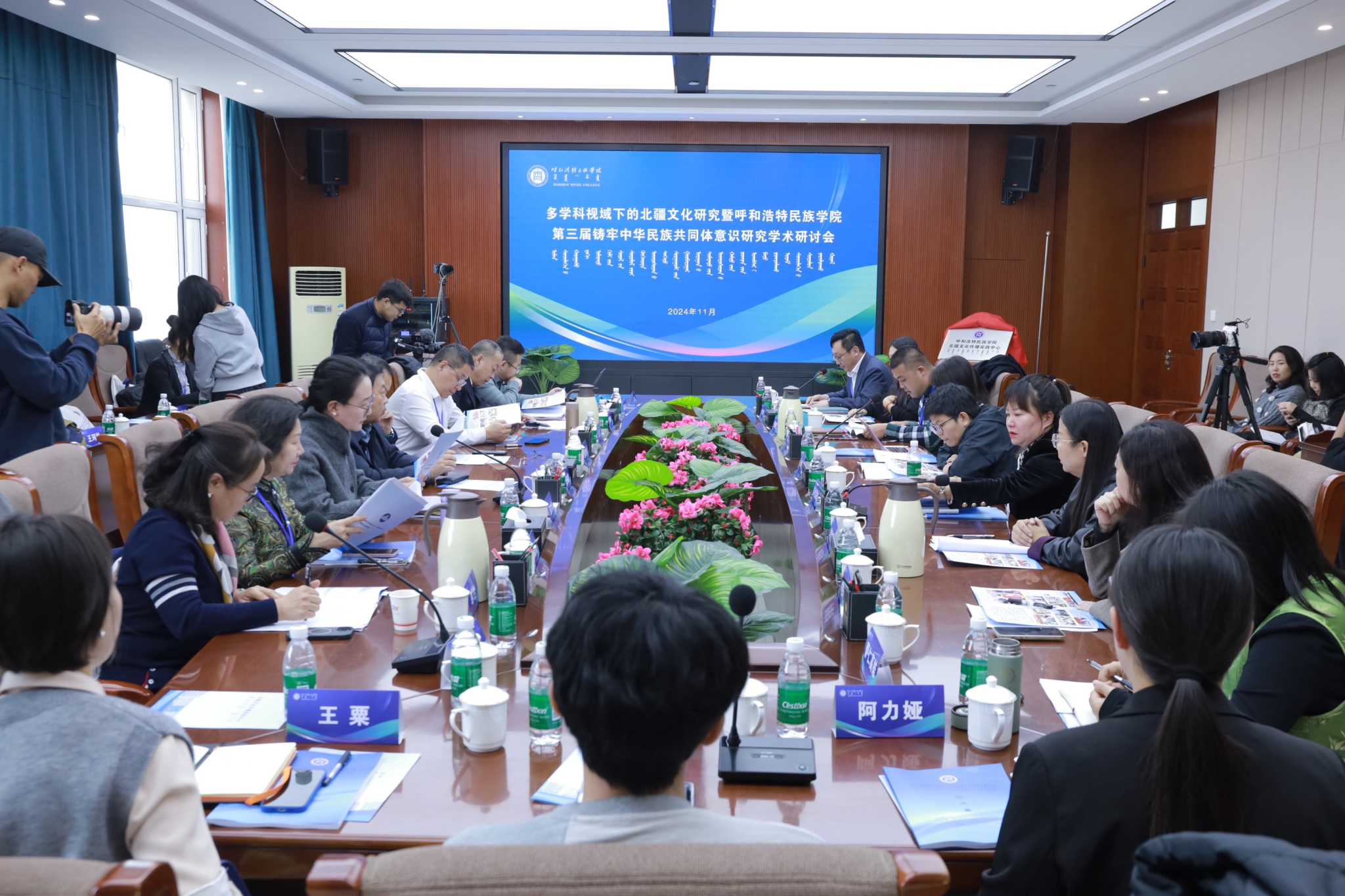11月23日,學校鑄牢中華民族共同體意識研究基地、蒙古族非物質文化遺產研究基地、北疆文化傳播實踐中心、新時代內蒙古三少民族語言文化研究基地聯合舉辦了 “多學科視域下的北疆文化研究暨第三屆鑄牢中華民族共同體意識研究學術研討會"。來自中國社會科學院、中國人民大學、蘭州大學、新疆師范大學以及區內外各高校、科研機構的100余名專家學者出席本次學術研討會。國家民委教育司一級巡視員周曉梅,自治區民委黨組成員、副主任云冰,內蒙古自治區人大科教文委副主任委員、內蒙古日報社原總編輯、社長吳海龍,中國社會科學院蒙古學研究中心主任包勝利,內蒙古廣播電視臺新聞中心攝像部原主任、高級編輯包金花,內蒙古自治區民委理論研究處處長張玲玲等嘉賓應邀出席研討會。校黨委書記、鑄牢中華民族共同體意識研究基地主任劉九萬出席會議并致開幕辭。校黨委副書記格根哈斯主持研討會開幕式。校黨委委員、副校長額爾敦布和主持研討會主旨報告環節。