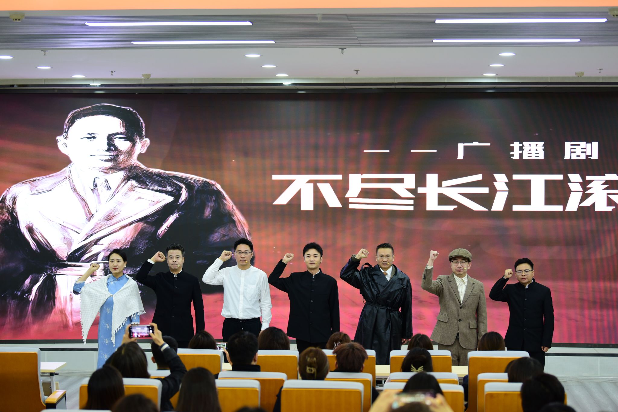 廣播劇是聲音的藝術,它能夠以聲音為畫筆,勾勒出無限的想象空間,讓聽眾在聲音中感受心靈的觸動。“廣播劇里的思政課——送廣播劇進校園”系列活動現場,廣播新聞中心的播音員、主持人、編輯記者們為呼和浩特民族學院的老師和同學們帶來了舞臺劇《不盡長江滾滾來》。