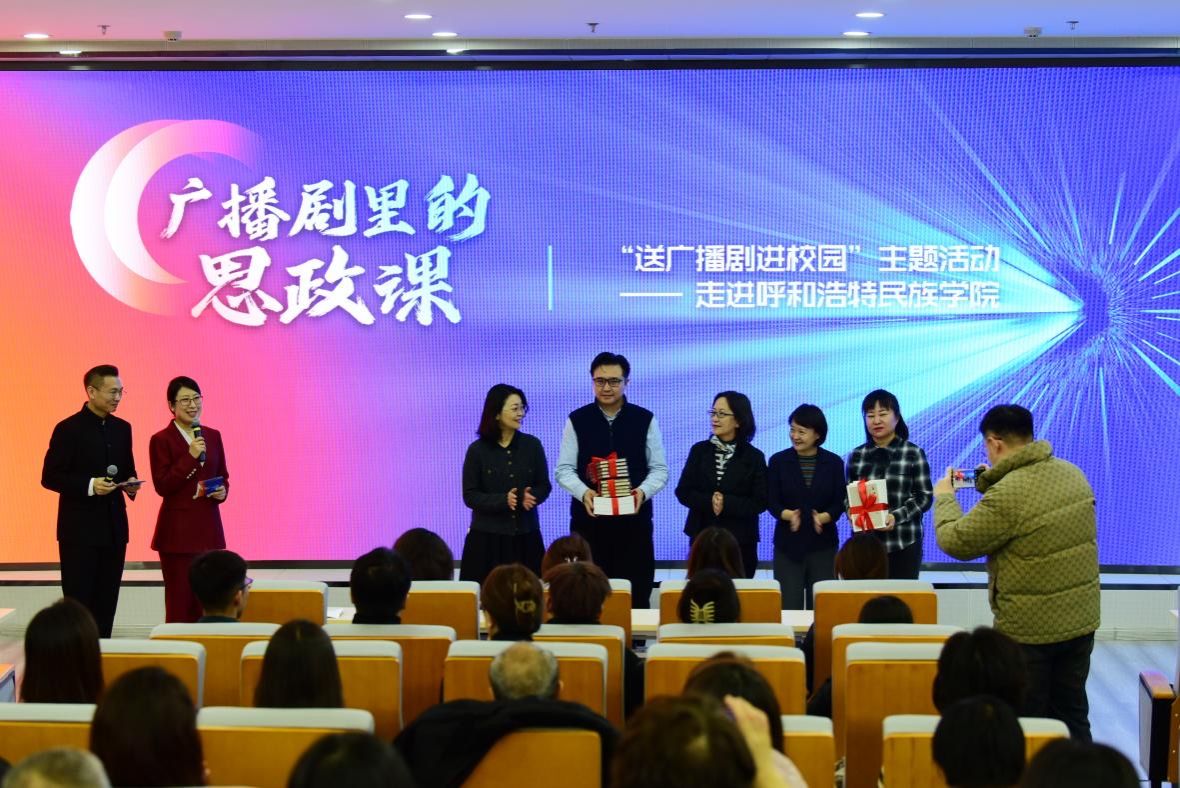 12月6日,內蒙古廣播電視臺開展“廣播劇里的思政課”——精品廣播劇送校園活動,走進呼和浩特民族學院。呼倫貝爾市融媒體中心、通遼市融媒體中心、烏蘭察布市融媒體中心、鄂爾多斯市融媒體中心等全區十一個融媒體中心的廣播劇創作者們帶著匯集了聲音力量的廣播劇作品走進大學校園。內蒙古廣播電視臺黨組成員、副總編輯山丹,內蒙古廣播電視臺廣播新聞中心副主任和巖出席活動。校黨委宣傳部部長張海峰、新聞傳媒學院黨總支書記蘇倫高娃參加活動。我校150余名師生到現場參加活動。
