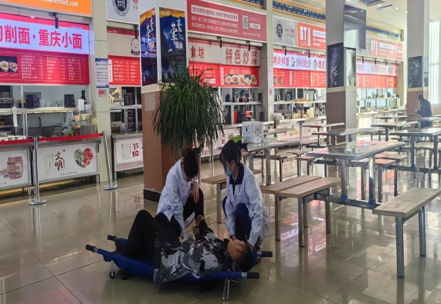 此次演練內(nèi)容有食物中毒應(yīng)急處置和火災(zāi)應(yīng)急處置兩項演練。參加的各部門通力合作、高效配合,共同模擬了疑似案例處置的全過程。