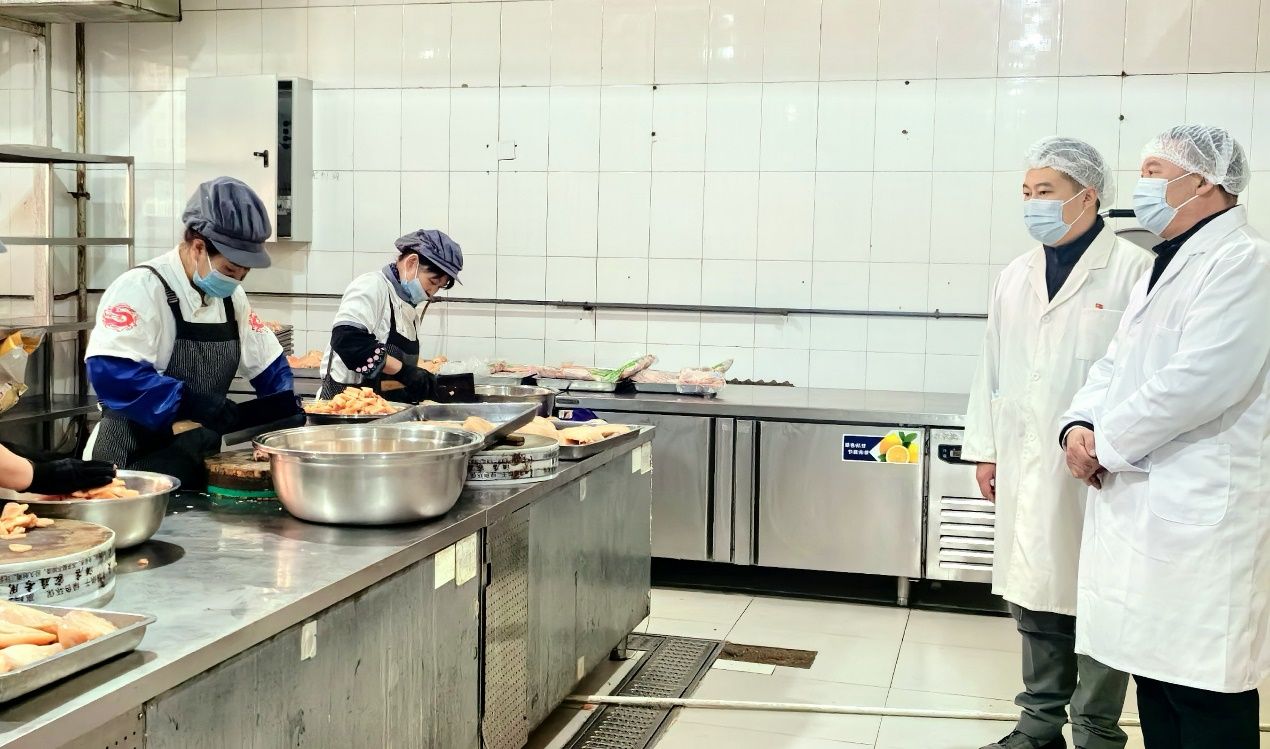 參會人員深入食堂一線,詳細了解食堂運營模式、餐具洗消程序、原材料采購、留樣管理、加工制作、供餐環(huán)節(jié)及“互聯(lián)網(wǎng)+明廚亮灶”的情況。在食堂后廚詳細查看了設(shè)備設(shè)施、食品保質(zhì)期、衛(wèi)生清潔、人員健康、場地消毒、制度建設(shè)、價格監(jiān)管及水電氣安全管理等情況。