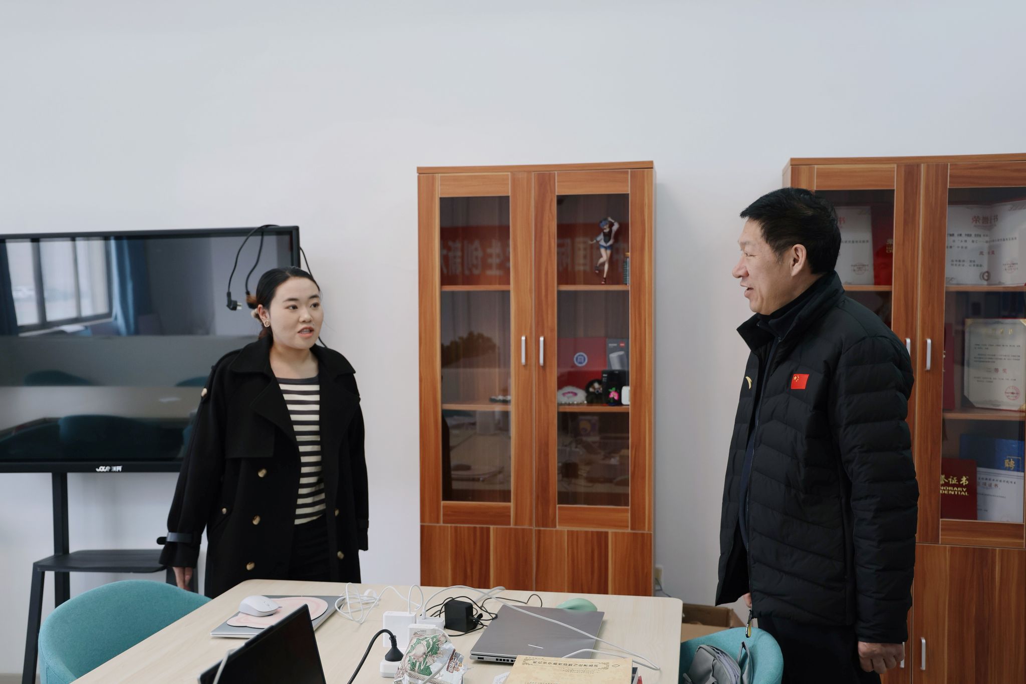 在創新創業孵化基地,劉九萬與參加學校大創訓練項目的學生進行了交流,鼓勵學生們珍惜學校提供的實踐平臺,努力提升自己的動手能力和創新思維,將理論知識與實踐操作緊密結合,為未來的職業發展打下堅實的基礎。