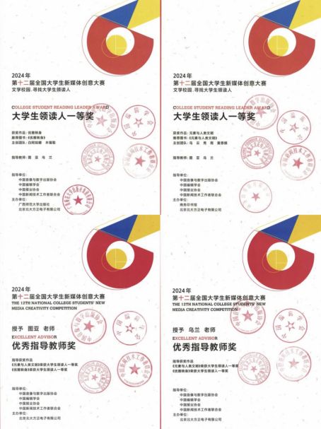 近日,由中國音像與數字出版協會、中國編輯學會、中國報業協會、中國新聞技術工作者聯合會共同指導,北京北大方正電子有限公司等多家出版傳媒機構聯合主辦的第十二屆全國大學生新媒體創意大賽評選結果揭曉,我校新聞傳媒學院學生作品《優雅轉身》(白阿如娜 木錫勒)、《元素與人類文明》(烏云 秀雨 黃思棋)榮獲“文學校園·尋找大學生領讀人”賽項作品創作一等獎,新聞傳媒學院教師圖亞、烏蘭榮獲優秀指導教師獎。