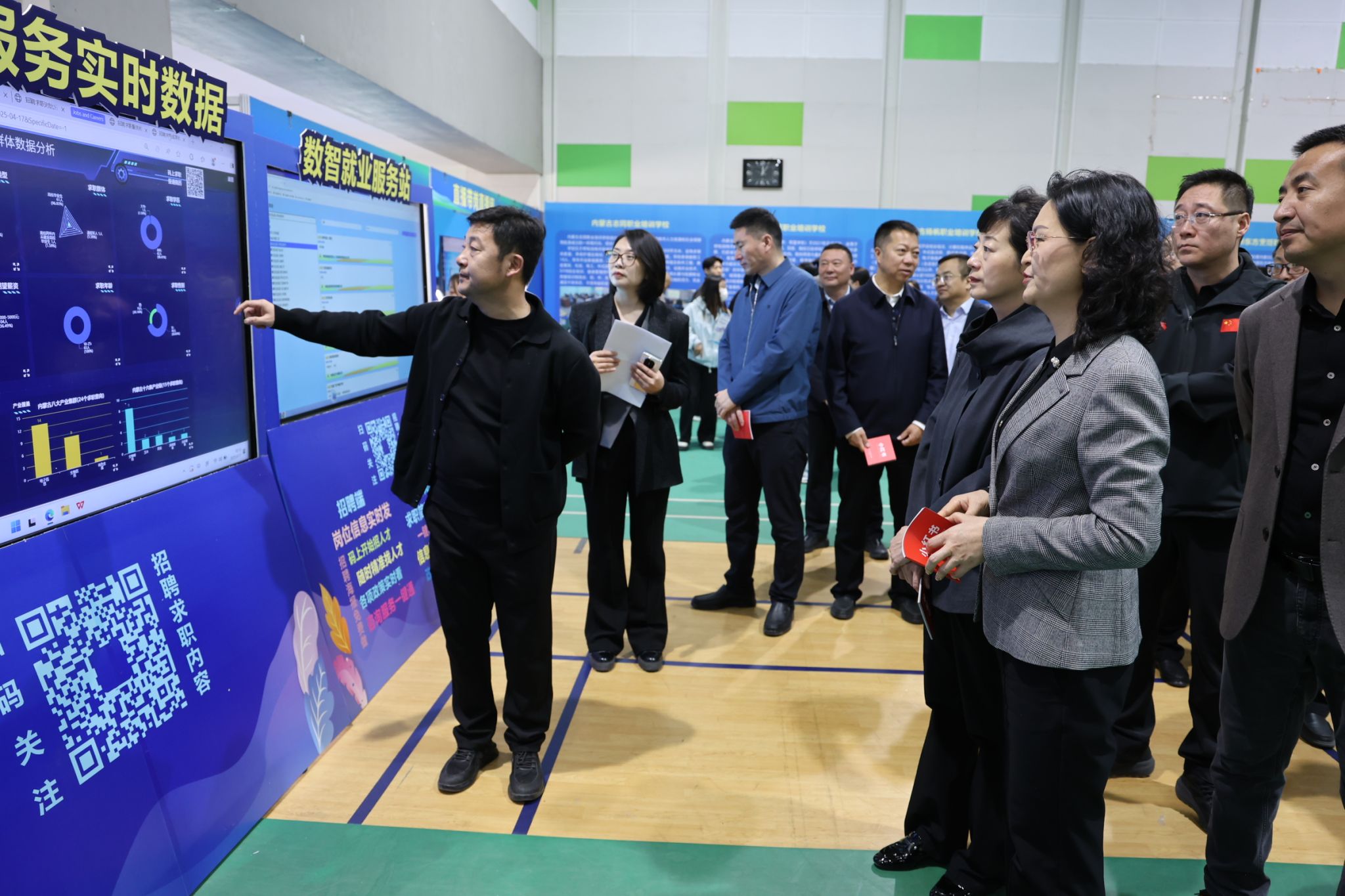 活動前,校黨委書記劉九萬,校黨委委員、副校長雙虎與自治區人力資源和社會保障廳黨組成員、就業服務中心主任伏凌濤,自治區團委副書記劉建輝等一行就學校就業工作進展及深化政校協作進行了座談交流,共商推動畢業生高質量就業舉措。