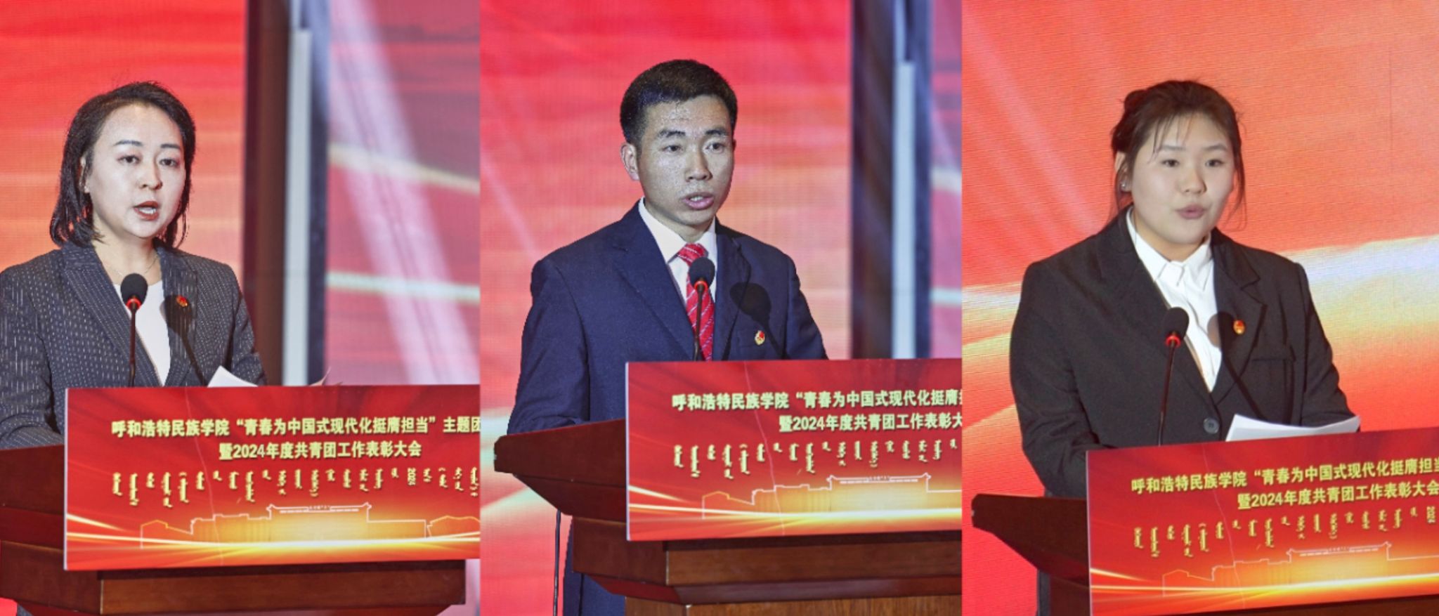 高喜天、劉瑞鴻、額爾敦布和分別為優秀共青團員代表頒獎