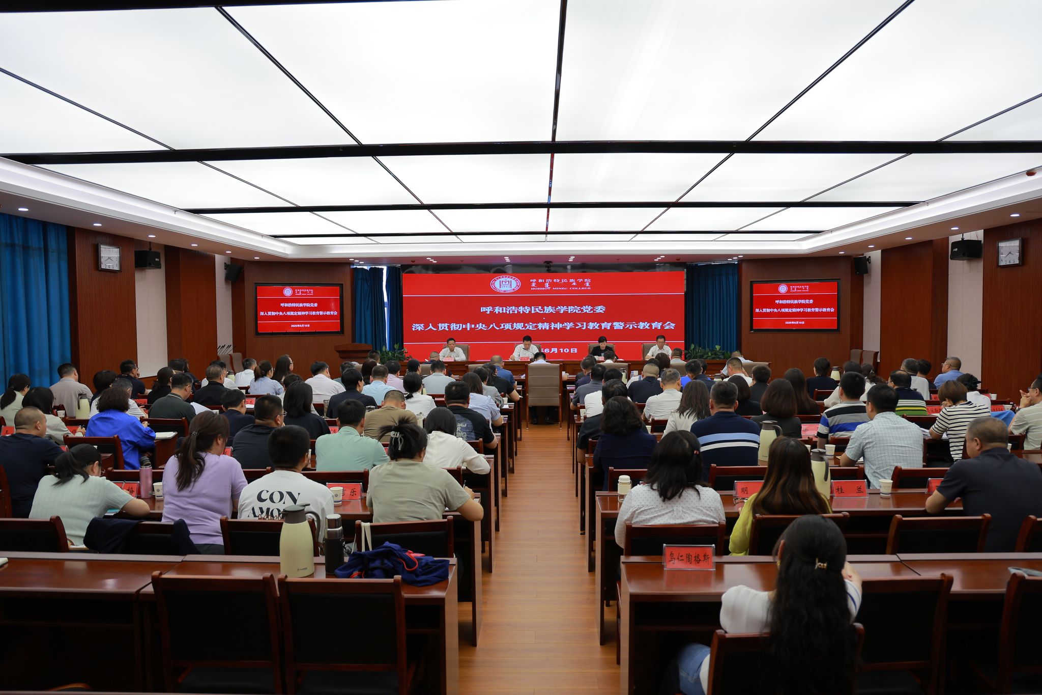 劉九萬強調,要堅持深學細悟,始終把政治建設擺在首位,做到對黨忠誠,堅定擁護“兩個確立”,堅決做到“兩個維護”。要堅持清廉履職,始終把嚴的基調挺在前,以案為鑒、警鐘長鳴,從通報的典型案例中真正受到警示警醒,深入進行自我檢視反思,不斷清掃思想上的灰塵、糾正行動上的偏差。要堅持實干擔當,以優良作風凝心聚力,嚴守紀律底線、規規矩矩做事,公正審慎用權、依法治教履職,強化責任擔當、積極主動作為,推動學校事業高質量發展。