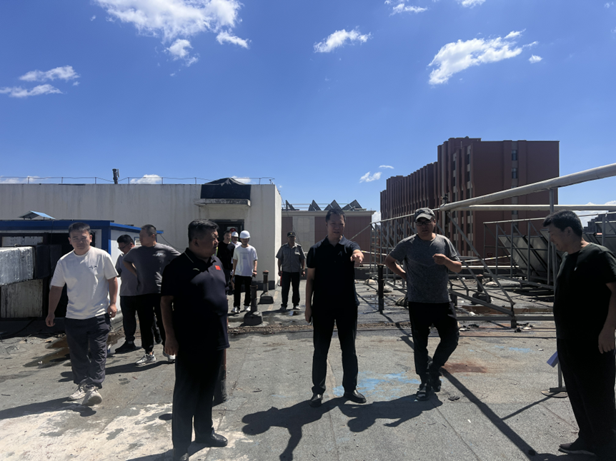 檢查組先后到9號學生公寓、6號學生公寓、音樂與舞蹈學院、辦公樓東側、南圖書館、北食堂、都林樓北側、綜合樓一層、鑄牢館2、4、5層等施工現場進行全面細致的安全隱患排查,聽取了相關負責人對項目實施和進展情況的匯報,重點了解了校內各項工程進度安排、安全生產防護措施落實、動火作業審批及施工人員日常管理等情況,明確了各施工現場安全員的職能職責,強調要時刻繃緊安全弦,持續完善安全管理制度,及時排查整改安全隱患問題,扎實做好施工現場安全防護;針對汛期強降雨導致的6號學生公寓頂樓屋頂漏雨情況,要求相關責任部門盡快維修處理,及時更換樓頂防水設施,防止雨水滲漏損壞學生財物,確保學生新學期返校正常住宿。同時,要求各單位切實扛起安全主體責任,確保責任到崗到人,扎實落實假期值班值守工作,持續強化校園重點區域、關鍵部位隱患自查、安全巡查,織密扎牢暑期校園安全防護網