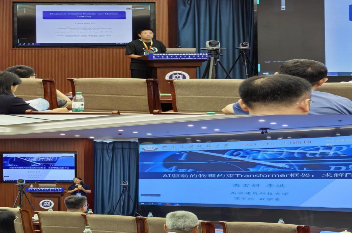 主題報告環節,重慶郵電大學理學院吳國成教授和西安建筑科技大學栗雪娟教授分別以“分數階復雜系統的機器學習建模”“AI驅動的物理約束Transformer框架:求解分數階偏微分方程的新方法”為題作報告。