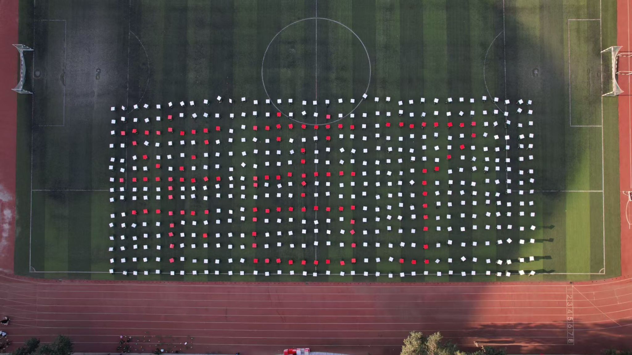 比賽尾聲,恰逢教師節前夕,全體新生手持“老師您辛苦了”“祝老師節日快樂” 等字樣的燈牌,在操場上整齊亮相,以溫暖的燈光與真摯的祝福,向教師表達敬意。