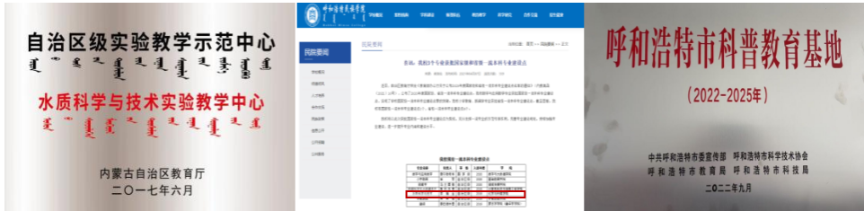 學院現擁有自治區級一流專業建設點1個、自治區級一流課程7門,自治區級實驗教學示范中心1個,呼和浩特市科普基地1個。19個專業實驗室,配有全自動水質分析儀、離子色譜儀、電感耦合等離子體質譜儀、掃描電子顯微鏡等大型精密分析儀器,可滿足學生和教師實驗及科研需求。近年來,學院深入貫徹新工科建設理念,深入開展校企協同育人工作,先后建立了內蒙古蒙草生態環境(集團)股份有限公司等30多個校級協同育人基地。