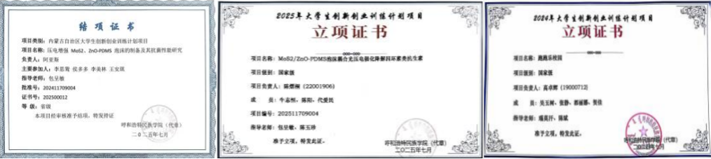 學院十分重視對學生專業實踐能力和創新創業能力培養。積極發揮科研優勢,鼓勵教師指導學生開展學術研究,培育了一批自治區級和校級創新課題。教師指導學生獲得了大學生創新項目自治區級項目12項,學生發表論文4篇,獲得專利2項,學生實踐能力和創新創業精神得到了較大提升。