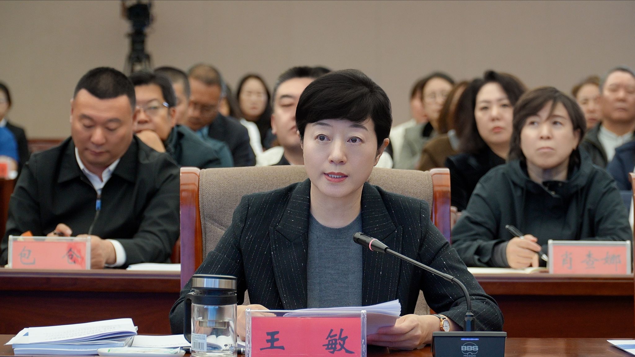 王敏介紹學校概況,從構建大思政育人格局、推動專業轉型升級、深化協同育人模式、激發教師隊伍活力以及構筑質量保障體系等方面總結了學校在本科教育教學工作中的成效與舉措,并明確了持續改進的目標與方向。