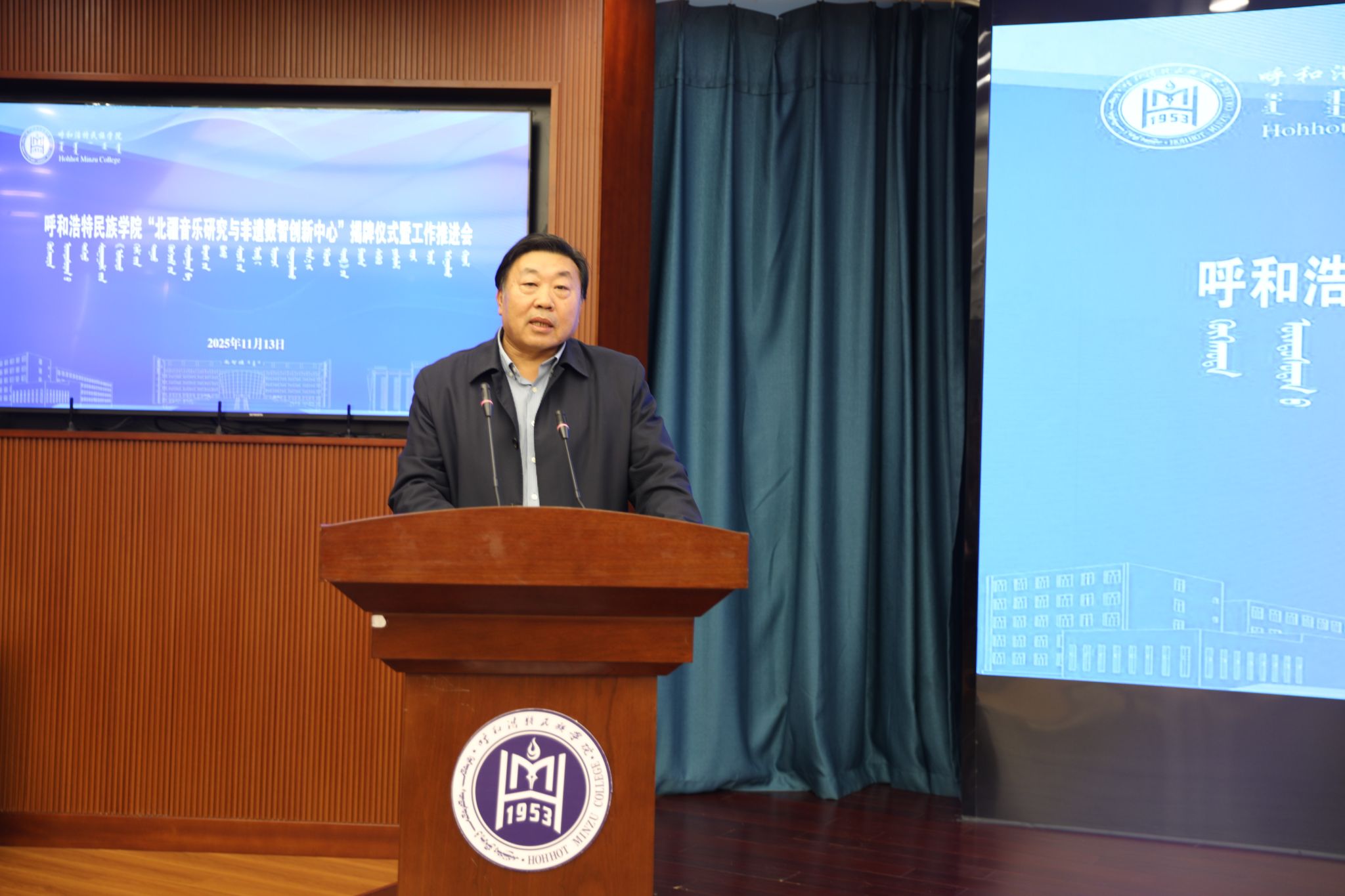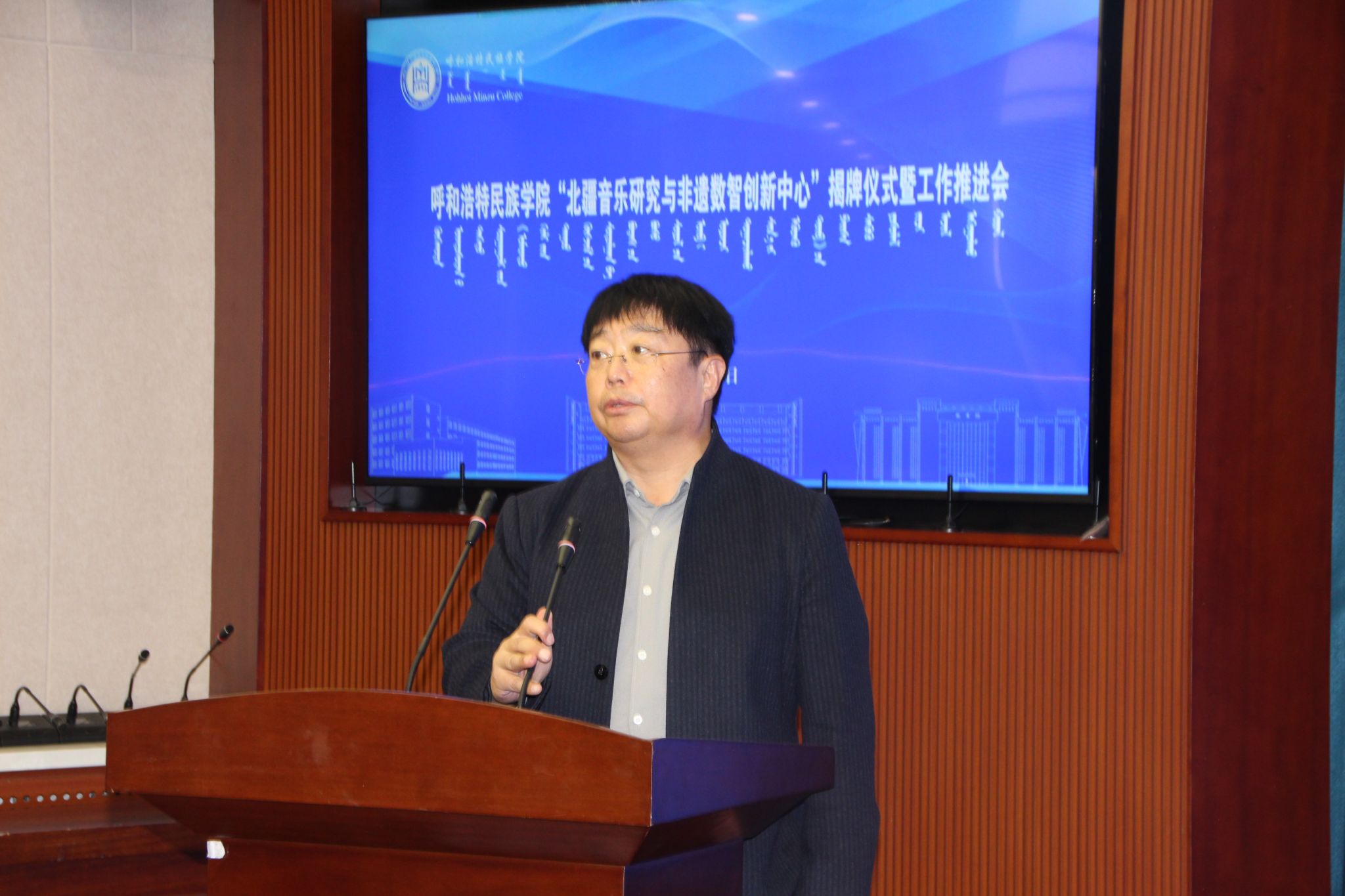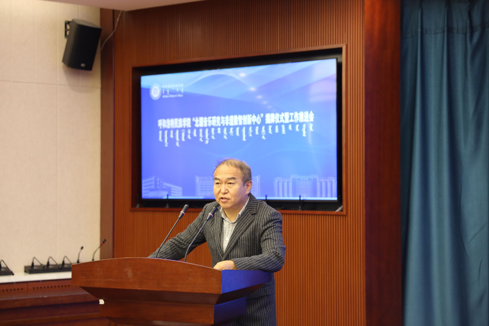 11月13日下午,我校“北疆音樂研究與非遺數(shù)智創(chuàng)新中心”揭牌儀式及工作推進(jìn)會(huì)在綜合樓12樓會(huì)議室舉行。校黨委委員、副校長(zhǎng)雙虎出席并講話,內(nèi)蒙古自治區(qū)人大教科文衛(wèi)委員會(huì)副主任委員吳海龍、內(nèi)蒙古師范大學(xué)音樂學(xué)院楊玉成教授、江西科技師范大學(xué)音樂學(xué)院哈斯巴特爾教授等區(qū)內(nèi)外專家學(xué)者以及中國(guó)音樂學(xué)院、內(nèi)蒙古師范大學(xué)、內(nèi)蒙古藝術(shù)學(xué)院,我校科研處、音樂與舞蹈學(xué)院相關(guān)負(fù)責(zé)人及師生代表參加。