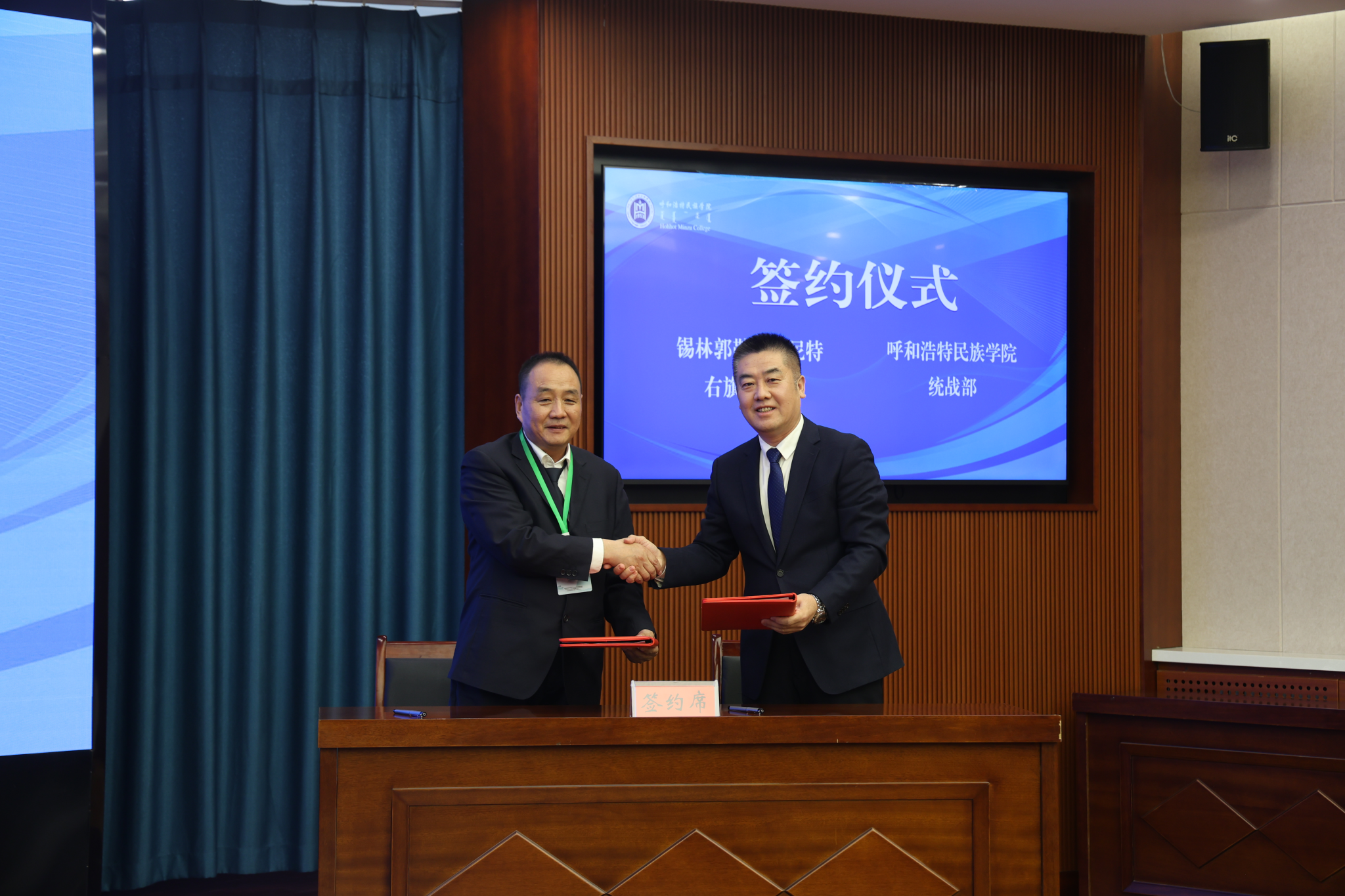 開幕式期間還舉行了呼和浩特民族學院統(tǒng)戰(zhàn)部與錫林郭勒盟蘇尼特右旗統(tǒng)戰(zhàn)部簽約儀式。