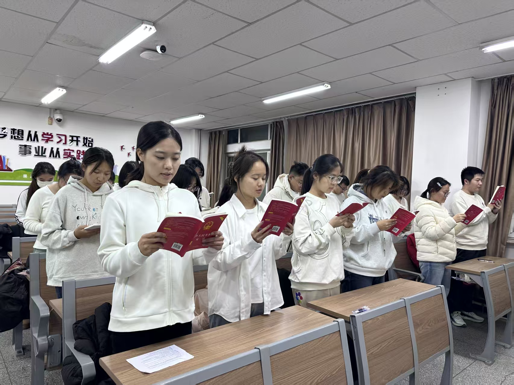 12月4日國家憲法日當天,學校在尚智樓廣場開展了主題鮮明的普法宣傳活動。通過設置憲法知識宣傳展板,以圖文并茂的形式普及憲法基本原則、公民基本權利與義務等核心內容。現場志愿者為師生發放普法宣傳單,詳細解讀與日常生活密切相關的法律知識。期間還制作了“憲啟民智,法潤校園——讓法治精神扎根青春土壤”原創宣傳海報,全方位營造濃厚的憲法宣傳校園氛圍,引導師生在耳濡目染中增強憲法意識與法治觀念。期間,還組織全校100多名師生參加了“憲法晨讀”線上活動。