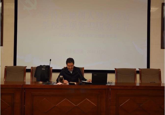 為深入貫徹習近平新時代中國特色社會主義思想和黨的十九大精神,11月20日上午在圖書館一樓報告廳,賀希格吉雅副校長以《堅持立德樹人,努力做好各項管理服務工作》為題目講授了主題黨課。保衛處負責人、后勤處負責人、圖書館負責人和全體黨員、干部參加了學習。