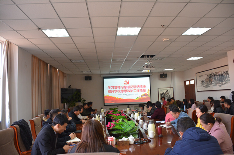 根據(jù)我校“不忘初心、牢記使命”主題教育工作安排,11月14日上午,在綜合樓1102會(huì)議室,學(xué)校黨委副書(shū)記胡春梅以“學(xué)習(xí)貫徹習(xí)近平總書(shū)記講話精神提升學(xué)校思想政治工作質(zhì)量”為題講授主題教育專題黨課,馬克思主義學(xué)思政課教師、各學(xué)院團(tuán)總支書(shū)記、輔導(dǎo)員參加學(xué)習(xí)。